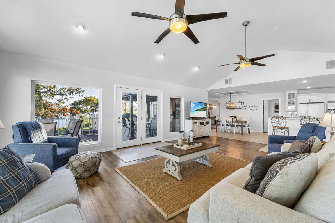 This family friendly getaway sits on a private point at the 7-mile marker, overlooking both the main channel and the Gravois Arm. Recently remodeled, the two-story home features three bedrooms, two bathrooms, plenty of space to relax, comfortably accommodating up to 9 people.