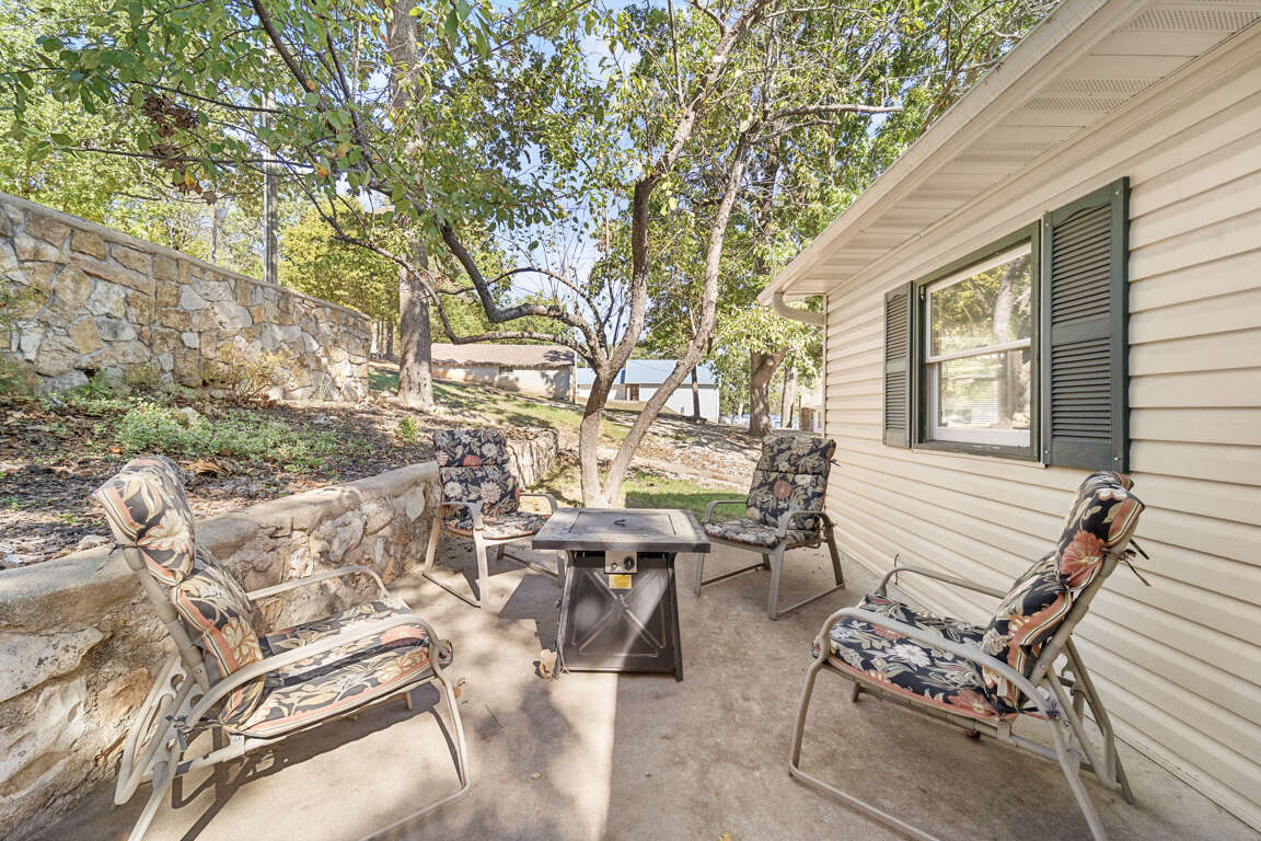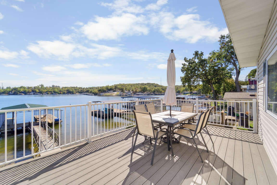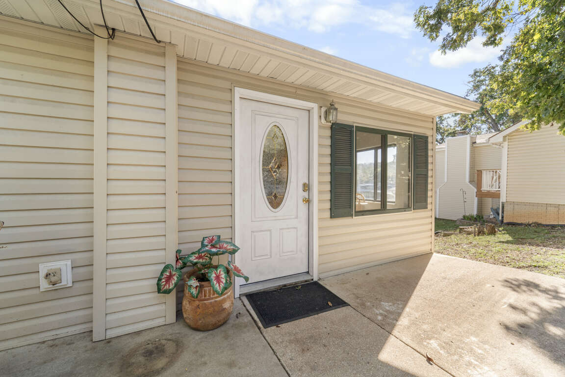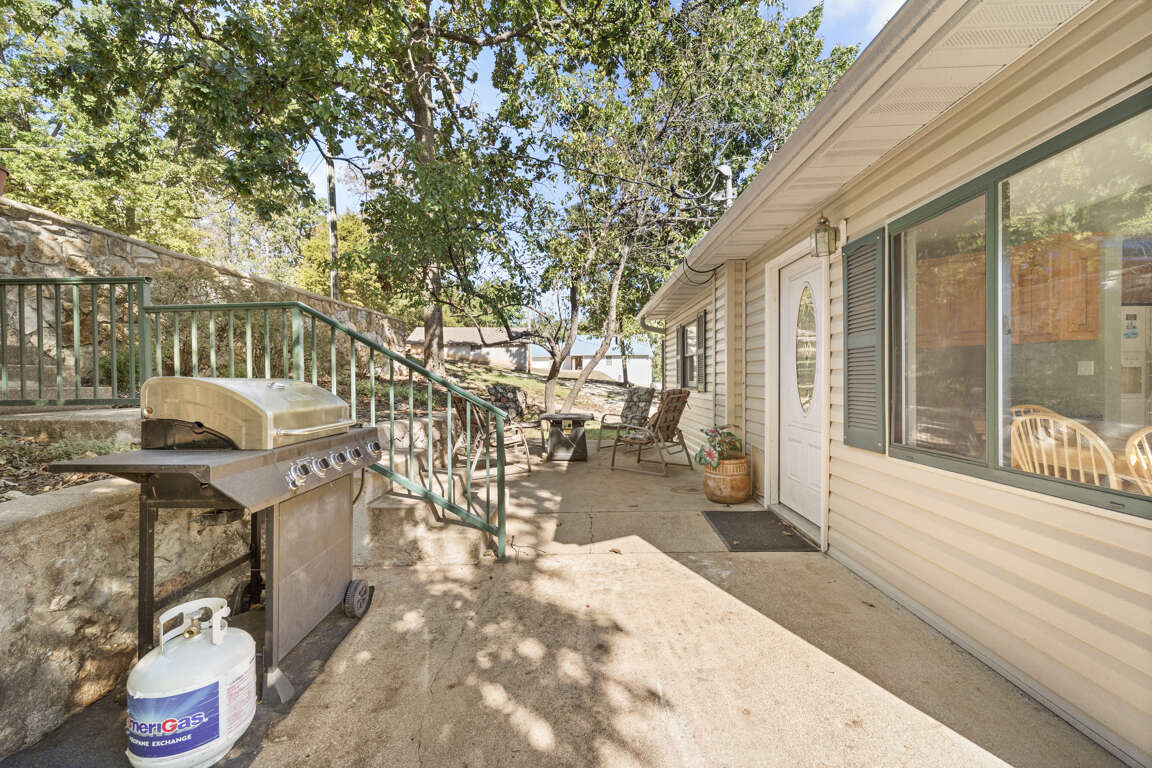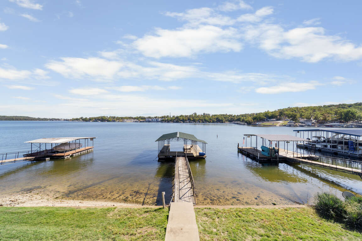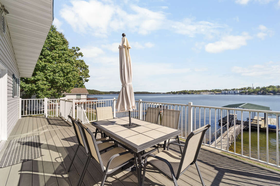 Escape to this cozy lakefront cabin, tucked in a peaceful cove, just 1 mile off the Gravois Arm. With parking for up to four vehicles, a spacious grassy yard, shade trees, a terraced garden, and a private dock, it's the perfect spot to relax and unwind. Inside, the open layout features a living room with a full size sleeper sofa and flat-screen TV, a dining area, fully equipped kitchen, laundry room, and a full bathroom with a walk-in shower. The cabin has two bedrooms, each with a queen bed, and comfortably sleeps six. Guests can also enjoy two patios - ideal for morning coffee or evening grilling - plus a covered dock area for shade and fishing.