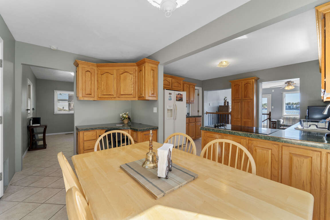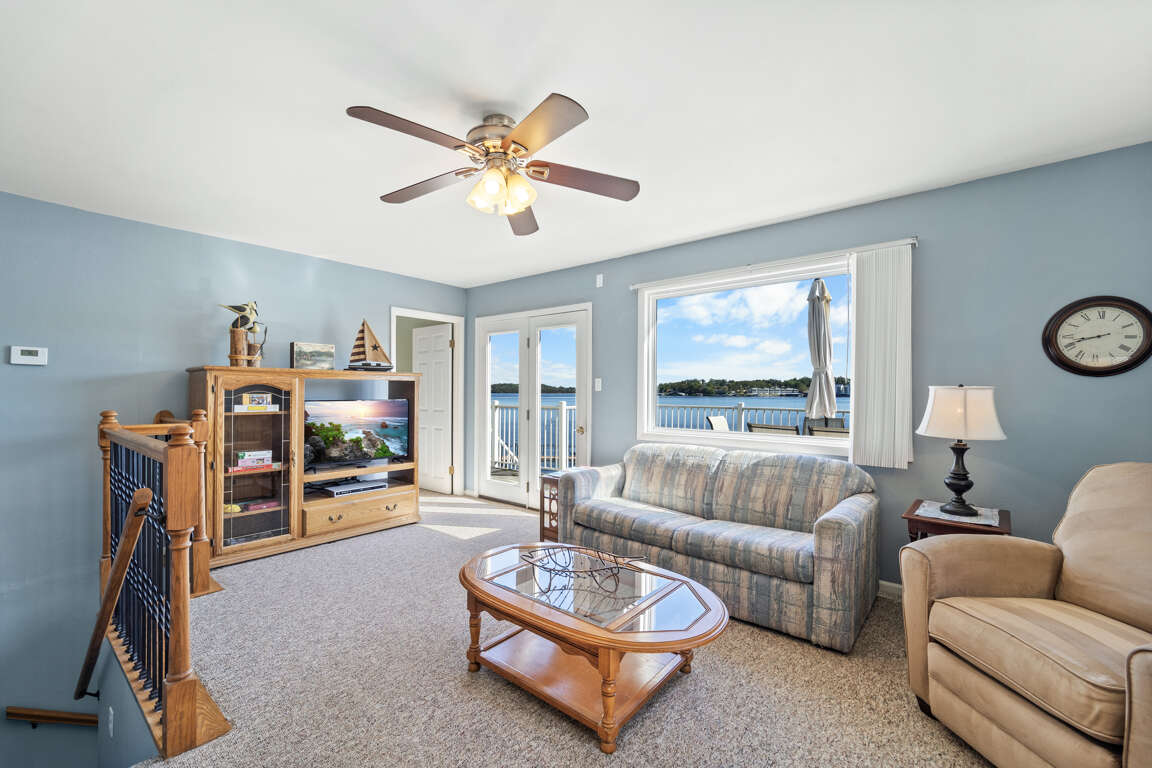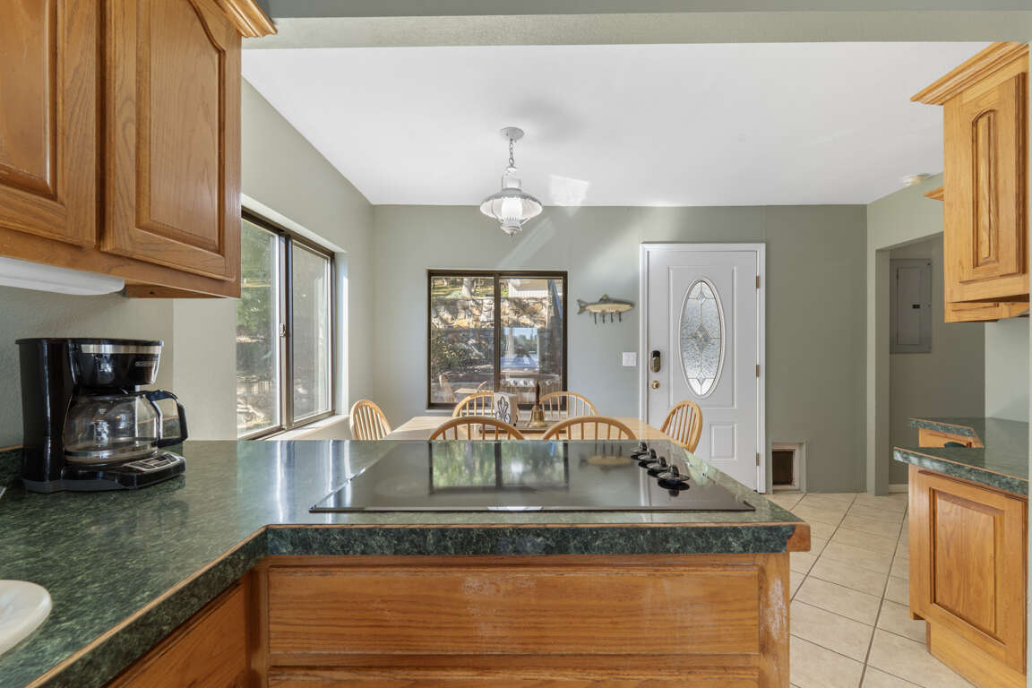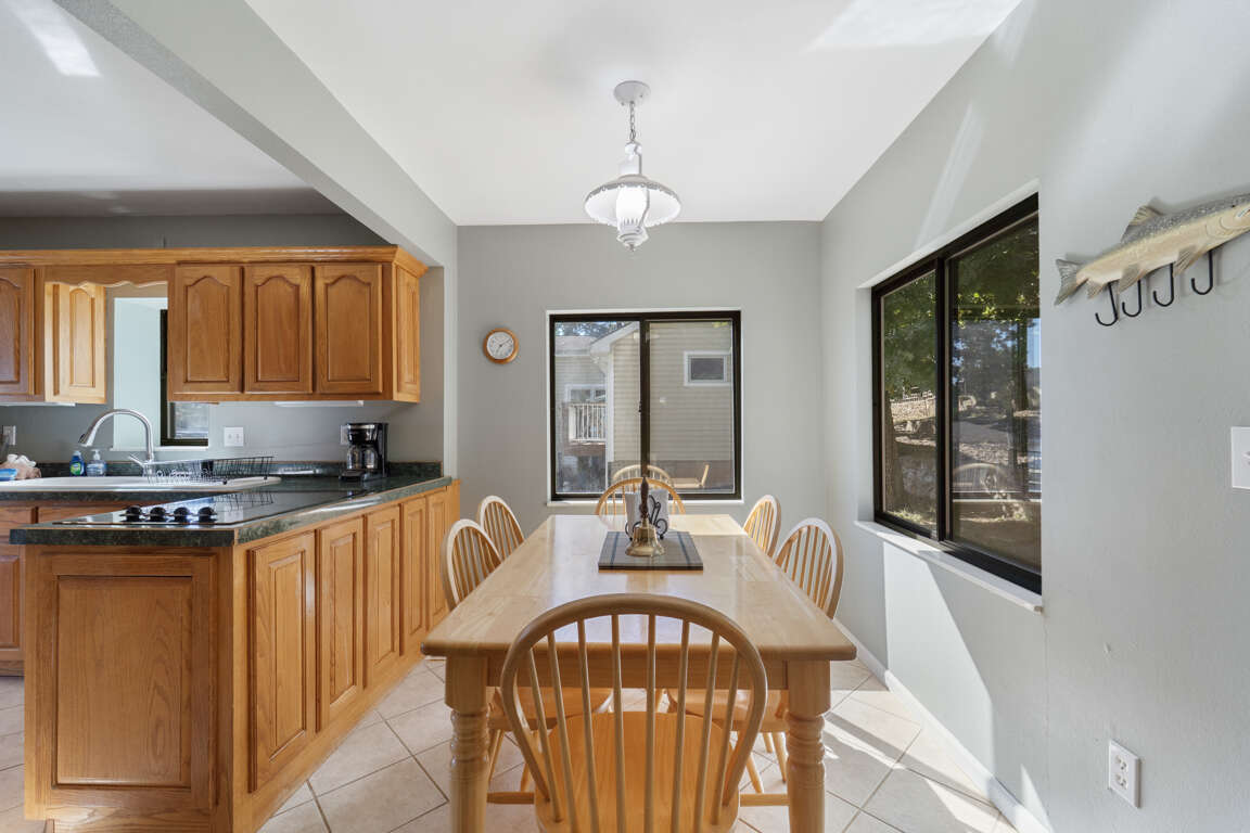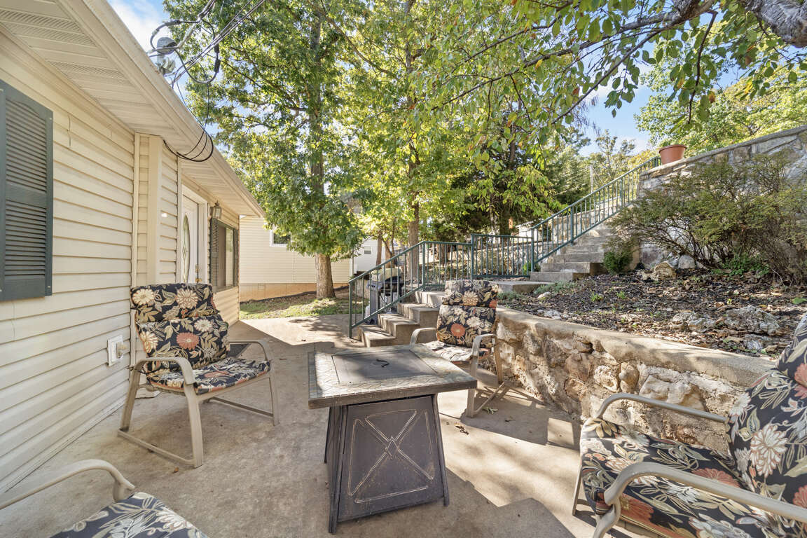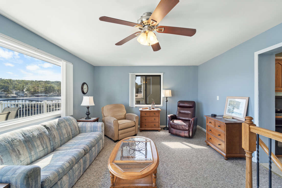 Escape to this cozy lakefront cabin, tucked in a peaceful cove, just 1 mile off the Gravois Arm. With parking for up to four vehicles, a spacious grassy yard, shade trees, a terraced garden, and a private dock, it's the perfect spot to relax and unwind. Inside, the open layout features a living room with a full size sleeper sofa and flat-screen TV, a dining area, fully equipped kitchen, laundry room, and a full bathroom with a walk-in shower. The cabin has two bedrooms, each with a queen bed, and comfortably sleeps six. Guests can also enjoy two patios - ideal for morning coffee or evening grilling - plus a covered dock area for shade and fishing.