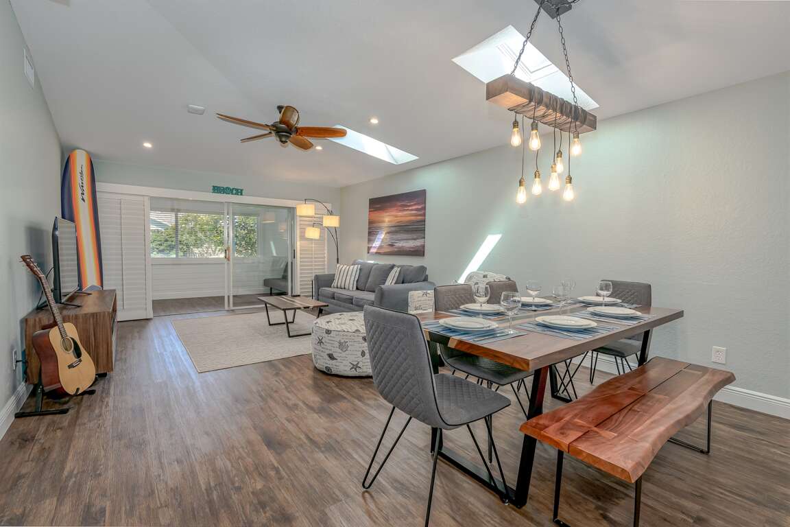 Surf-themed Endless Summer AND Balinese-themed Island Time are TWO exquisitely appointed 2 bed, 2 bath side-by-side homes capable of hosting a large group or two separate parties at the same location! Enjoy all the creature comforts of home including: a modern, fully equipped stainless-steel kitchen, large comfy king beds, and ample lounging areas throughout. Each home features a separate quaint and private fenced back yard with an inviting fire pit for the perfect after-beach relaxation!