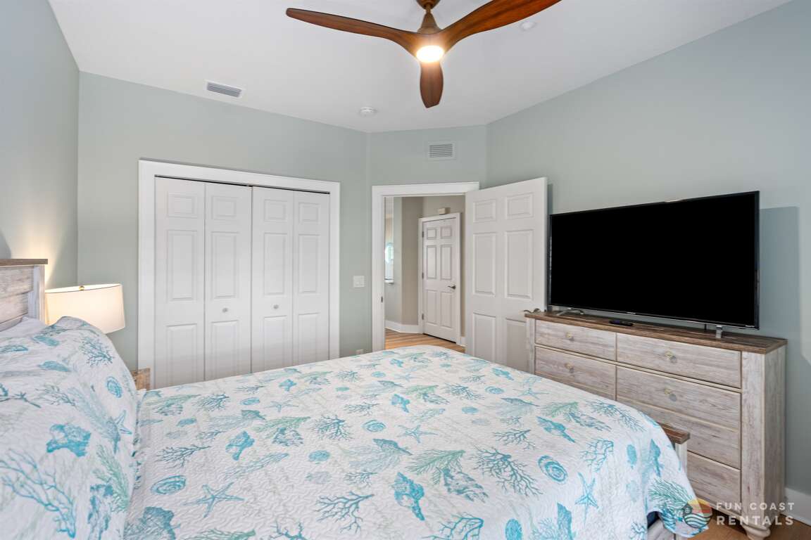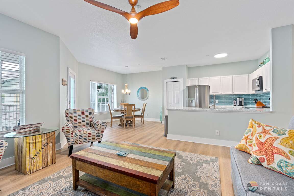 Welcome to Mermaid’s Loft, your rare one-of-a-kind stay in the very heart of the NSB beachside—quite literally OVERLOOKING world-famous Flagler Avenue! This gorgeous 2-bedroom, 2-bath apartment is beautifully appointed with whimsical ocean-inspired décor and offers plenty of room for you and your guests to sprawl out during your stay! The location is prime—just step downstairs to experience all the exciting events, world-class dining, trendy boutique shops, and vibrant night life Flagler Avenue has to offer; it’s that easy! Enjoy the soft golden sands of New Smyrna’s award winning beaches just a short 5 minute stroll away. After a fun-filled day at the beach, unwind and watch the crowds below on Flagler Avenue during events from your very own private balcony with outdoor seating! Not feeling like eating out? Prepare your culinary creations in the fully equipped stainless steel kitchen with quartz countertops. Location, comfort, and space—Mermaid's Loft has it all!