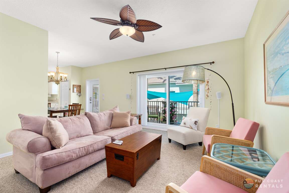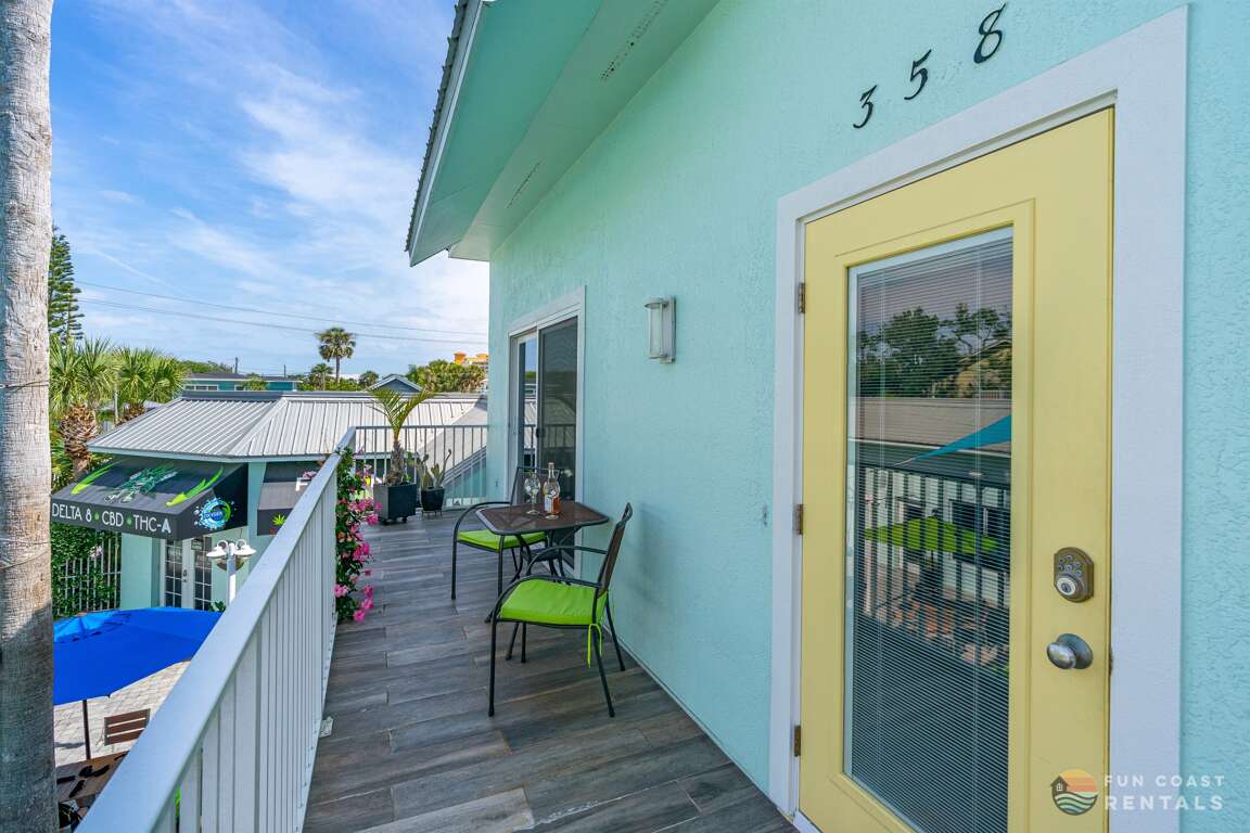 Stay in the heart of New Smyrna Beach in this 2 bed, 2 bath apartment on world-famous Flagler Avenue! Just steps from the beach, top-rated dining, and unique shops, it features a fully equipped kitchen, an inviting living space, private parking for one car, and a peaceful balcony overlooking the charming courtyard below. Perfect for couples, families, or friends seeking comfort and convenience. Enjoy the best of NSB right outside your door—your ideal beach escape awaits!