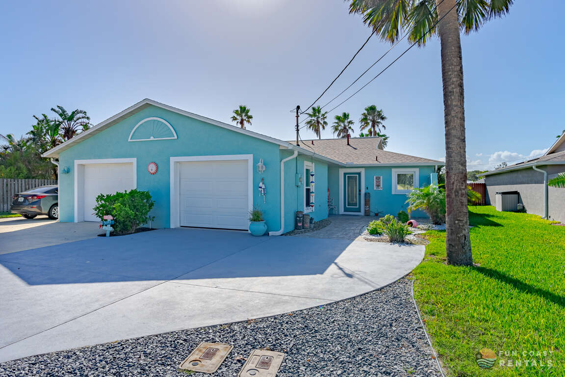 Discover leisure and serenity at Sandy Toes, your perfect oceanfront house in New Smyrna Beach, FL. This 2-bedroom property is an ideal vacation destination.