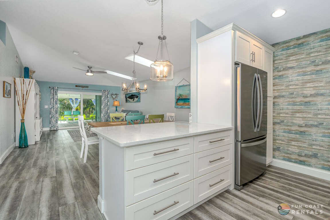 My oh my, if it isn't the sweetest little vacation home in New Smyrna Beach–just STEPS from the beach! This one-of-a-kind 2 bed, 2 bath nautical-themed home is full-featured and exquisitely decorated with custom local art pieces throughout. From the modern fully equipped stainless steel kitchen with coffee bar, to the spacious and beautifully appointed private fenced yard, Sandy Toes is sure to put you in the beachiest of moods for your stay in NSB!