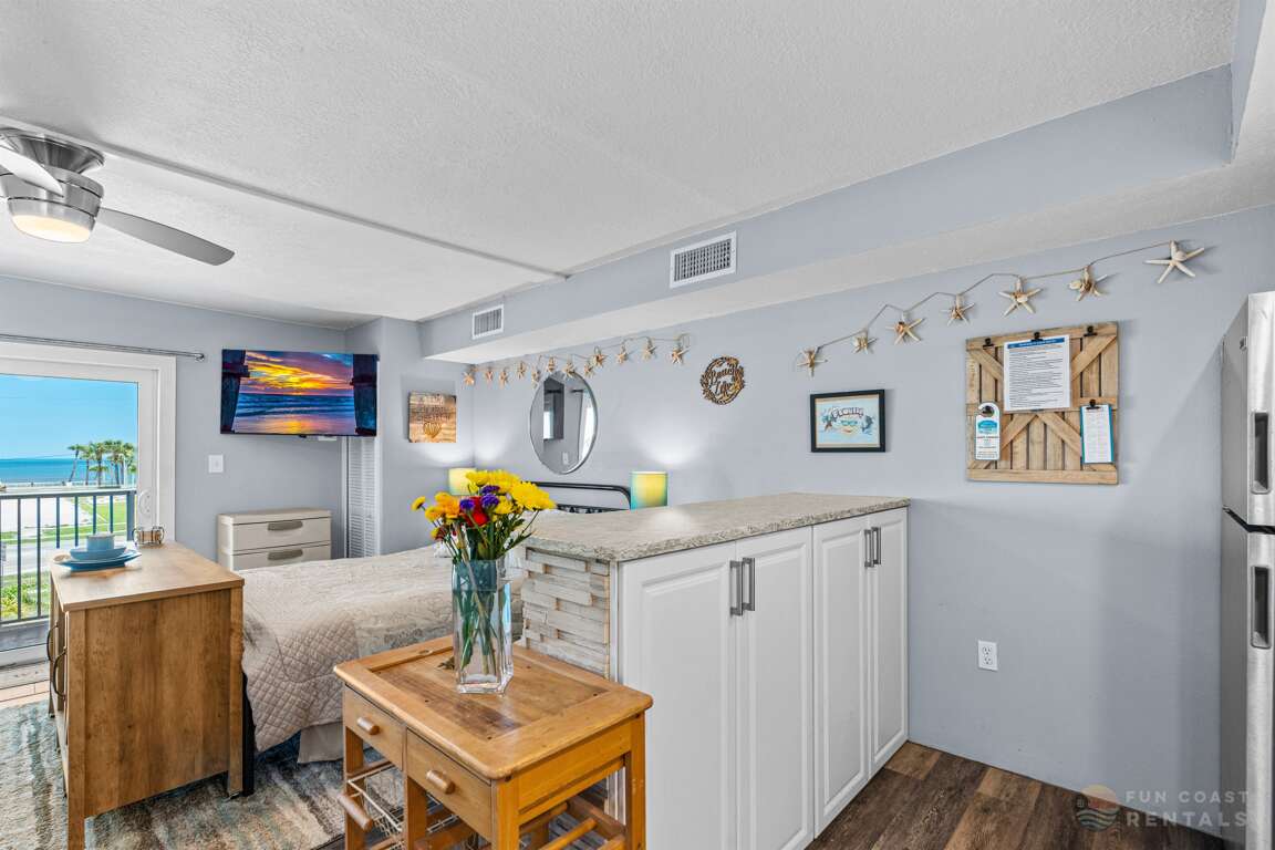 Awaken each morning to beautiful sunrises over the Atlantic Ocean with a cup of your favorite coffee or tea from the 3rd floor east-facing balcony! Soak up some sun at the newly-renovated on-property pool or have yourself a relaxing beach day immediately across the street in the golden sands of NSB–next to the 27th Ave Beachfront Park. Recreate your favorite meals seaside in the updated, fully-equipped stainless steel kitchen. Your pied-à -terre in one of Florida's best kept secrets awaits!