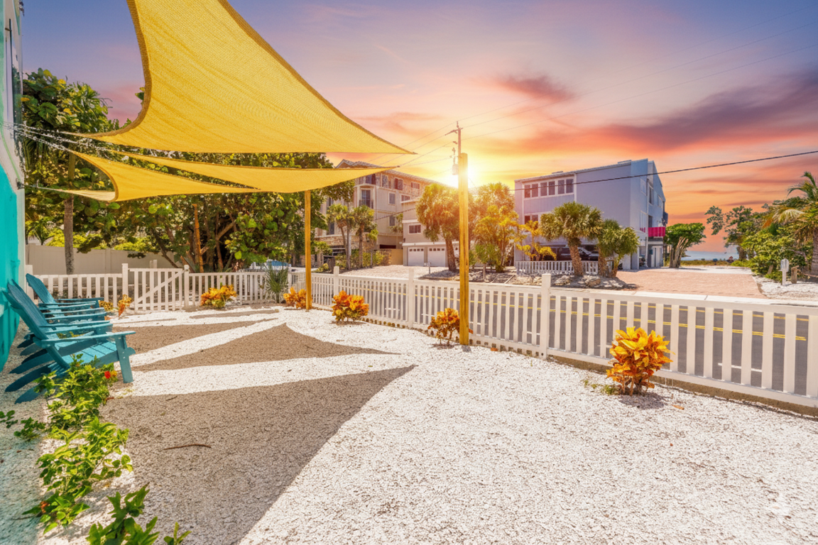 Our beach access is across the street, 12-steps, and is quieter and more private. Although one of the most desirable on the Siesta Key and has no parking available so isn’t easy to access from rentals outside the neighborhood. The water here is shallow clear and calm with white quartz-sand tide-pools perfect for sleeping drinking or playing. A livelier beach scene with food, drinks and even a weekend drum circle is accessible a 5-to-10-minute walk south on the beach.<br />