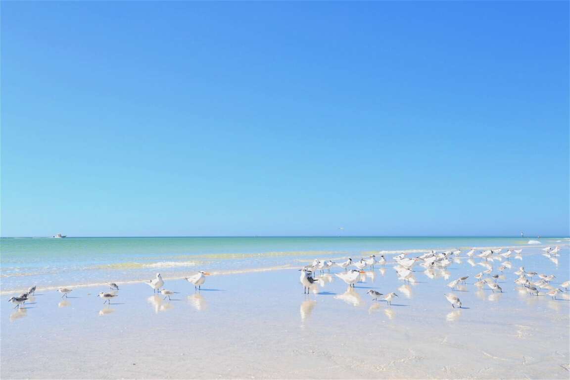 Our beach is Siesta Key’s widest, has panoramic views of the gulf to the North-West-and-South, and is the top spot in North America for sunsets. You can swim or wade to Sand Dollar Island, a naturally occurring white sand cay popular with dolphin sand-dollars and “occasionally” manatee and giant-conch. The water is shallow clear and calm with white quartz-sand tide-pools perfect for sleeping drinking or playing. You can go from the water to lunch or dinner and back to the sand without putting on your shoes.<br />