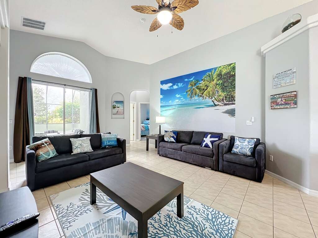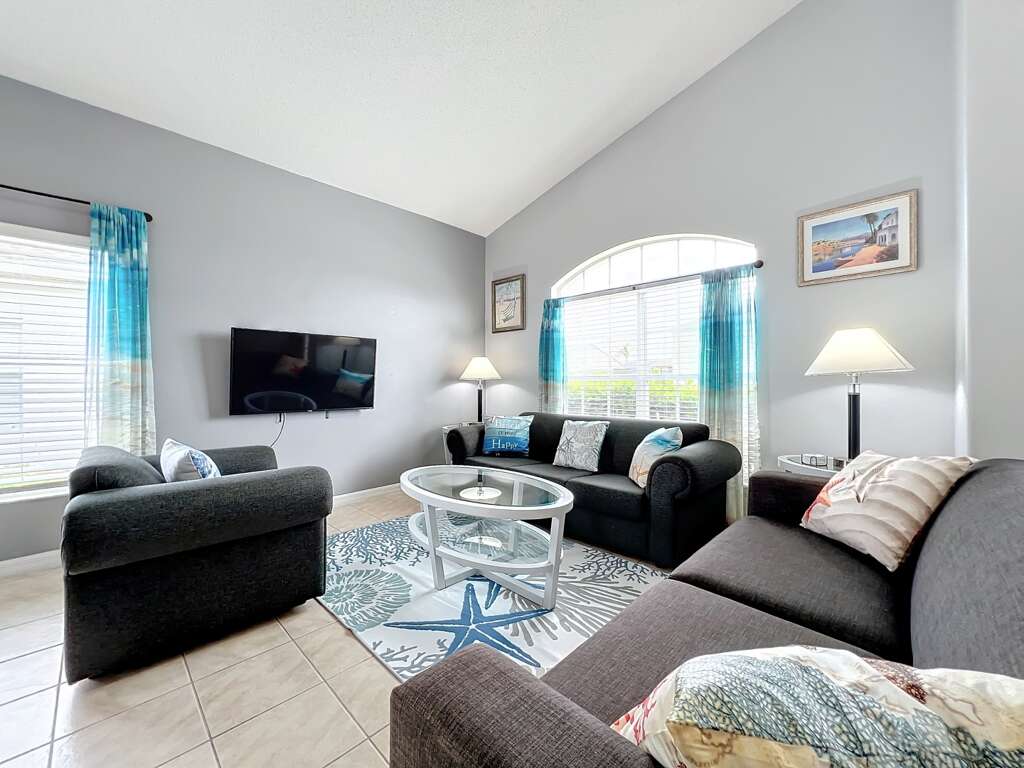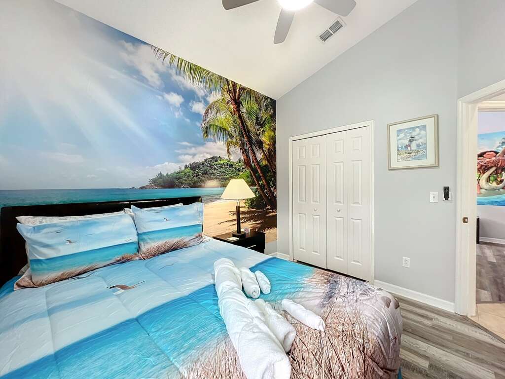 Choose our elegant beach-themed 4 bedroom vacation home in Clermont, FL. Offering a communal pool, internet access, TV, and more, for your ideal break.