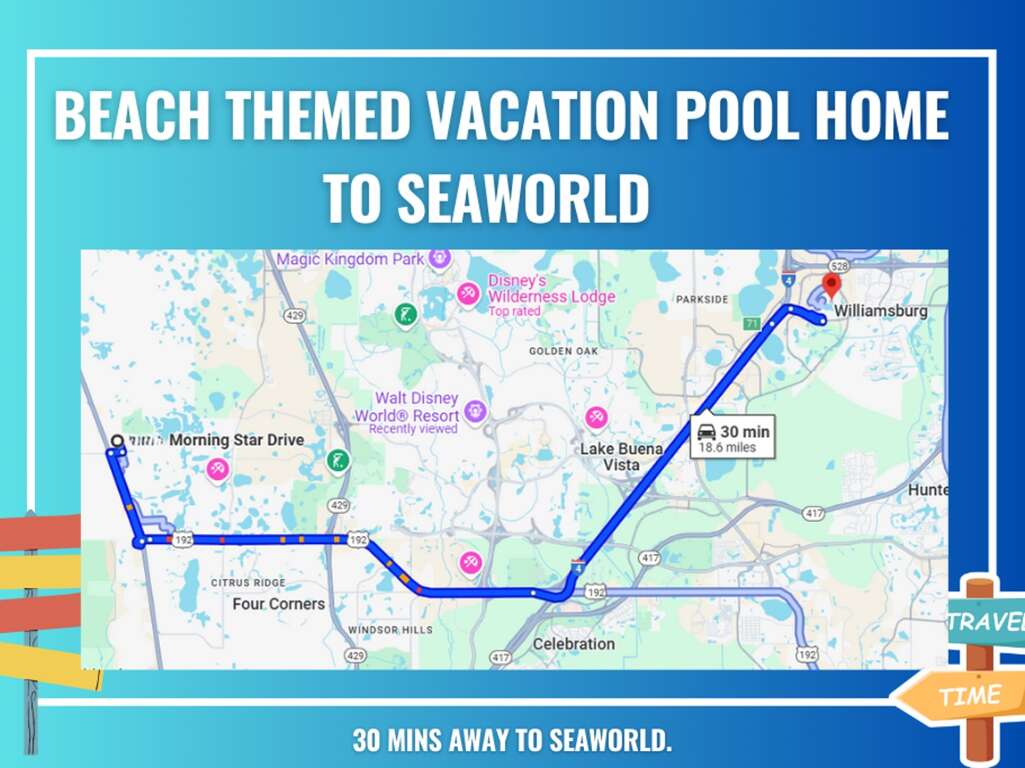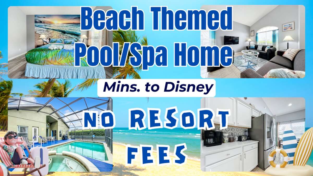 Beach Themed Vacation Pool Home: Pet Friendly Place for Rent with 4 Bedrooms and Minutes from Disney Sleeps 12 Guests