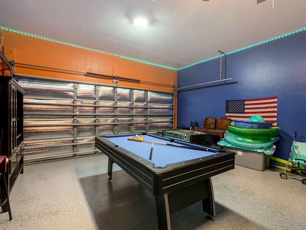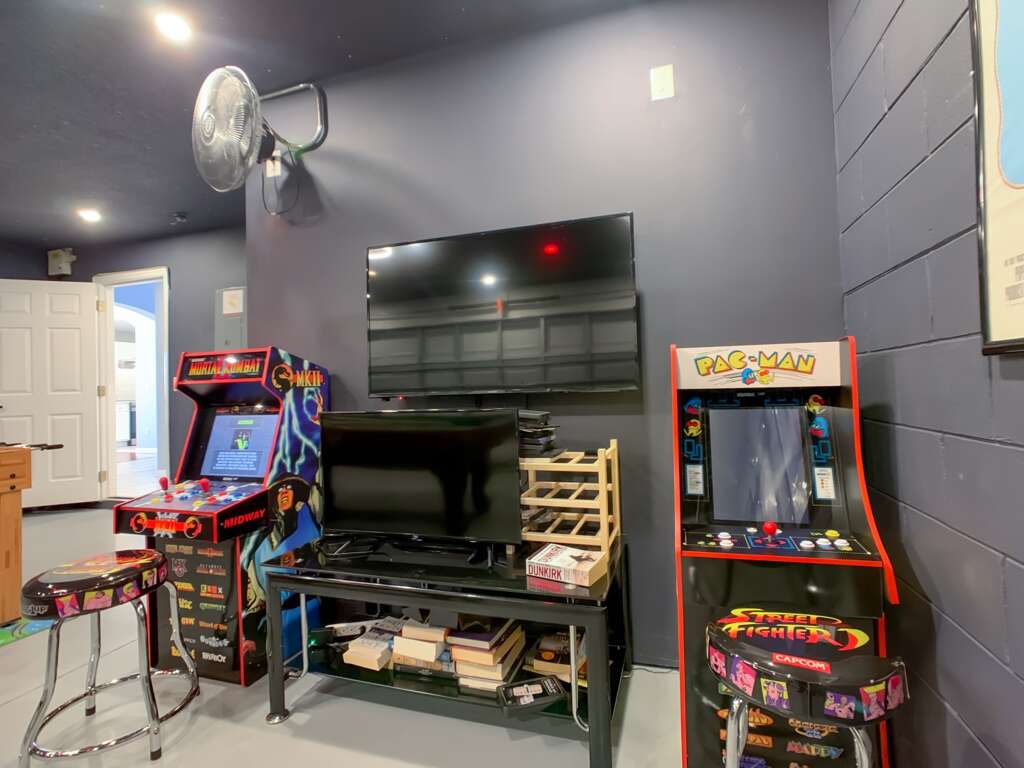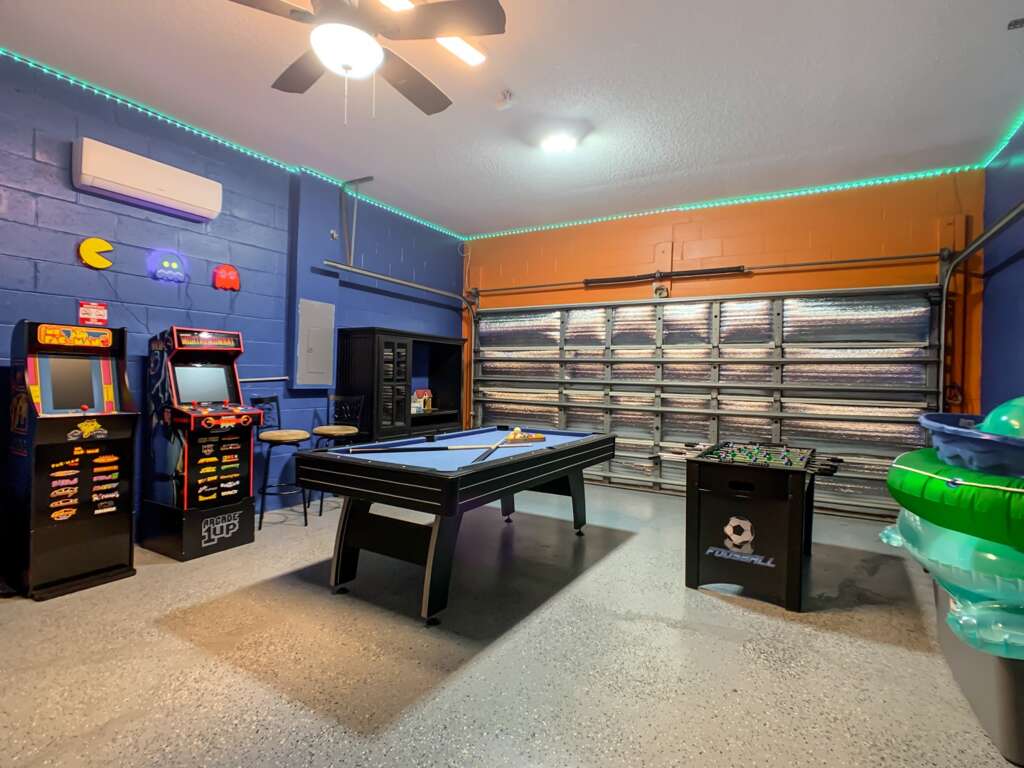 Air-conditioned game room w/ pool table, foosball & arcade games