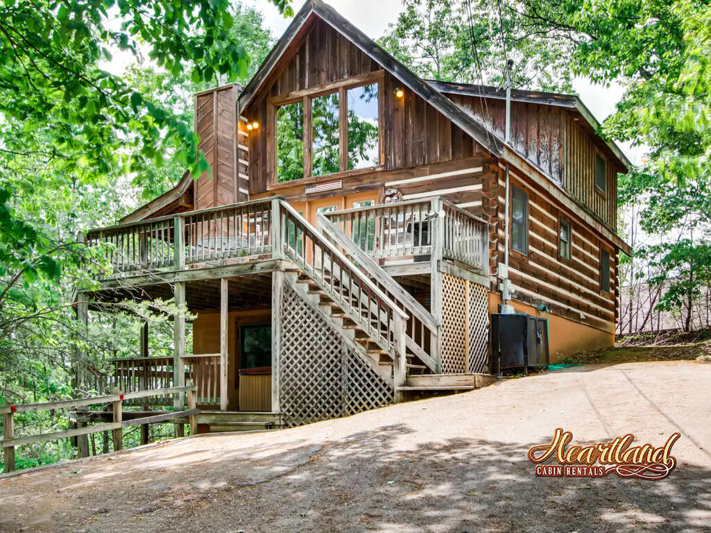 Type: Pigeon Forge Cabin, Area: Between Gatlinburg and Pigeon Forge, Full Baths (2), Half Bath (1), Near Dollywood and Splash Country, Private, Laundry - Washing Machine, Spa - Jacuzzi, Decks (2), Kitchen - Full, Game - Pool Table, Wooded Area, Pet Friendly: Up To 25 Pounds, Sleeper Sofa (1), Mountain View, King Bed (2), NEAR SHOPPING, NON-SMOKING, Porch Swing, 2 Level Cabin, 3 Level Cabin, MP3 Player, Arcade Game, Kitchen - Dishes/Utensils, Private Bathroom, Rockers on the decks, Detector - Carbon Monoxide, Detector - Smoke, Private Entrance, Kitchen - Stove, Kitchen - Microwave, Hot Water, Body Soap, Laundry - Clothes Dryer, Kitchen - Baking Sheet, Dining Table, Kitchen - Toaster, Wine Glasses, Outdoor Seating, Free Parking, Kitchen - Oven, Kitchen - RefrigeratorOther Rentals from Heartland Cabin Rentals