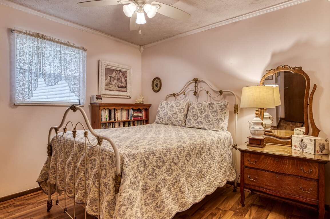 "Robbins' Roost" is designed for your ease and comfort, all on one level with easy access from the driveway. Inside, you'll find a fully equipped kitchen, a living room adorned with a wood-burning fireplace, a master bedroom with a king-sized bed, a second bedroom featuring a queen-sized bed, and a full bath to cater to all your needs.