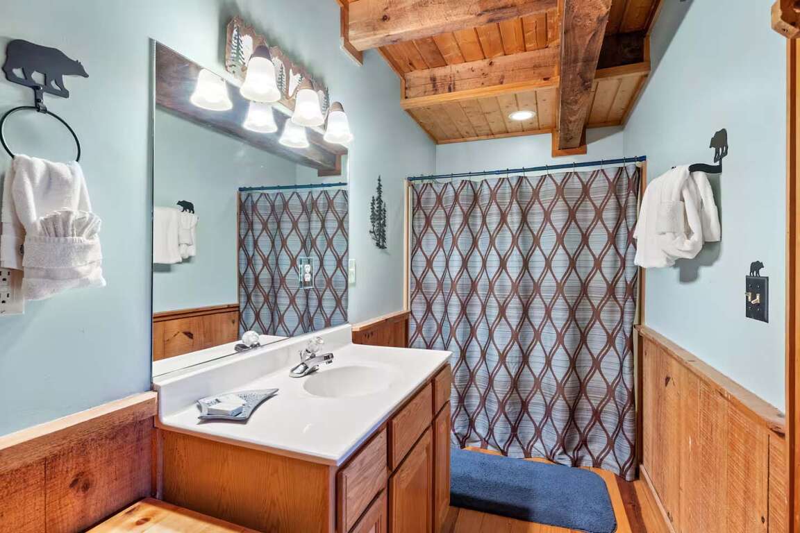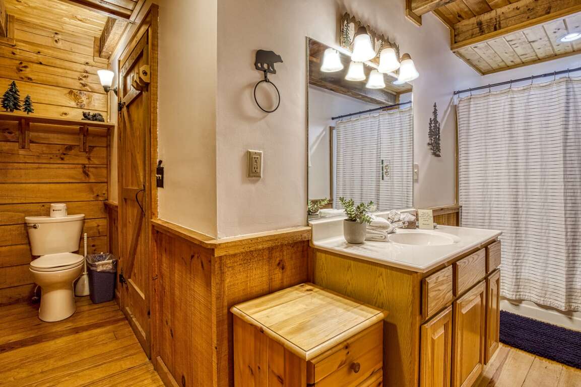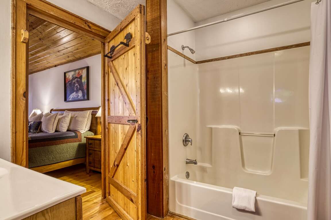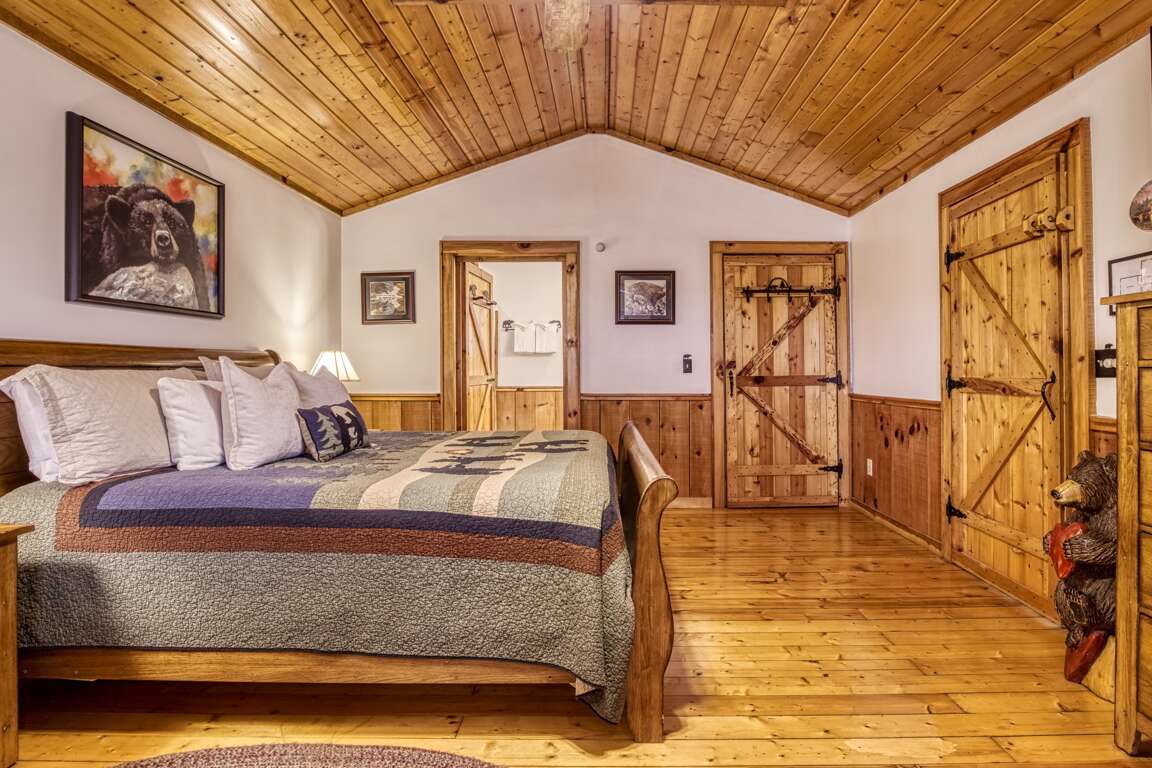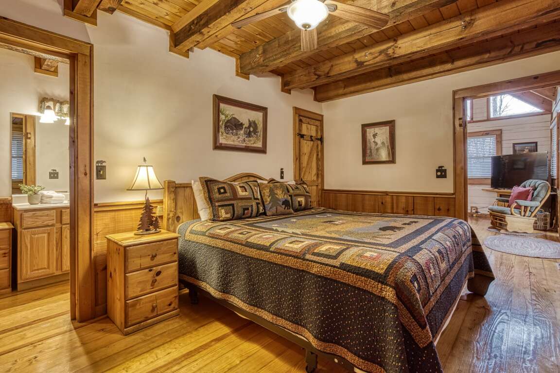 A cozy King bedroom with a premium Serta i-Comfort mattress and attached full bathroom provides the perfect space for additional guests to enjoy their own mountain retreat.