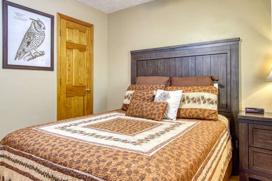 The main level has two super comfy bedrooms, each with flat-screen TVs. One offers a king bed while the other has a queen. On the main level, there is also a full bath for added privacy and convenience.