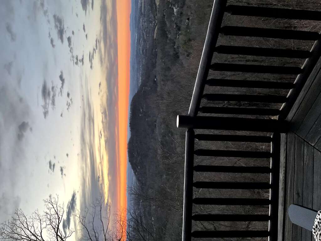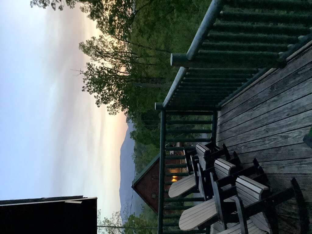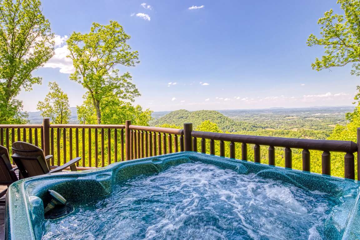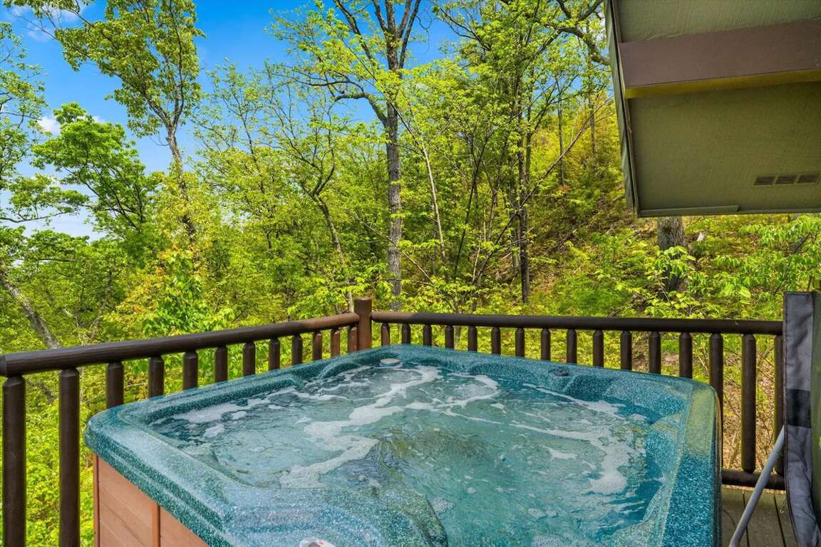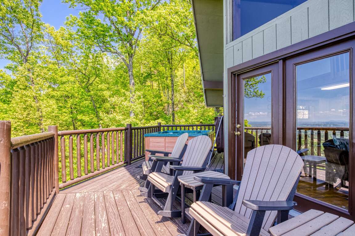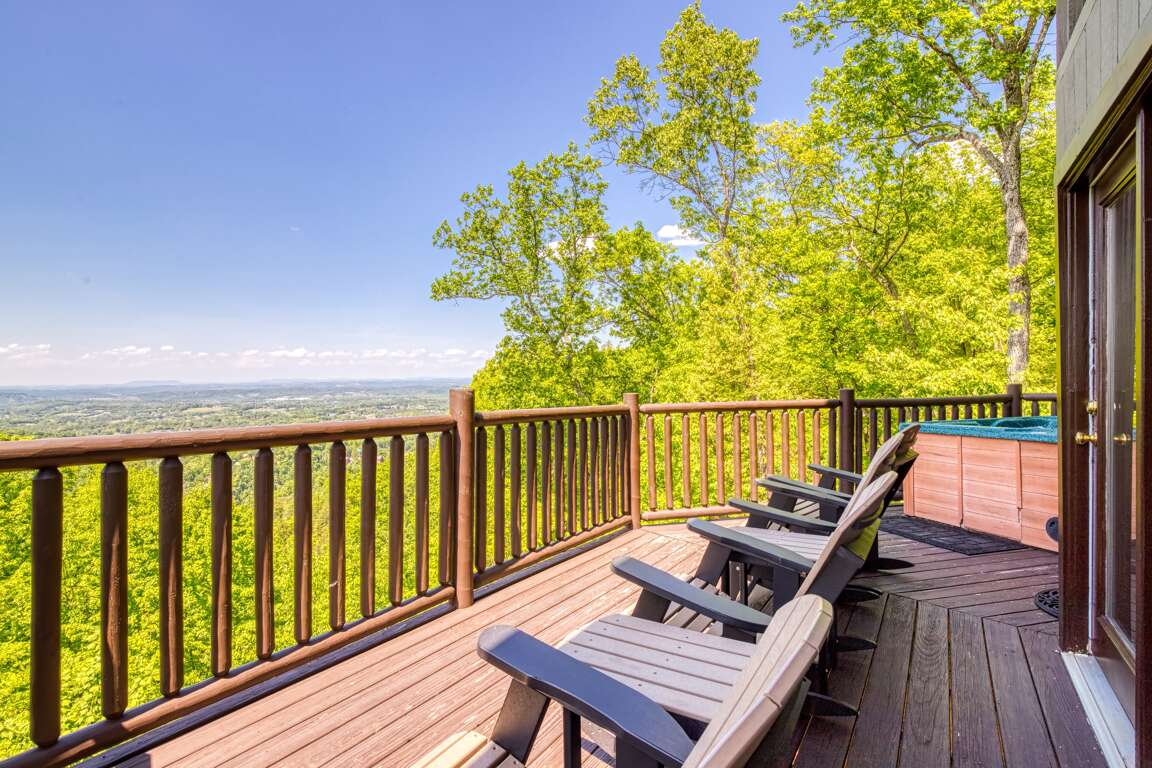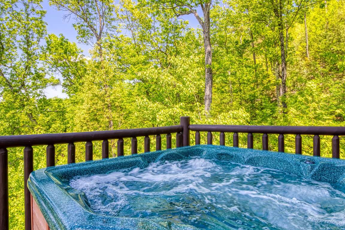 If you’re in search of a little quiet time and a chance to reconnect with Mother Nature, then you’ll love spending time on the deck of this getaway. Gaze at the stunning view, sit a minute or two in one of the rocking chairs, or go for a dip in the steamy, bubbling hot tub. Gaze at the stars and see who can find the most constellations!