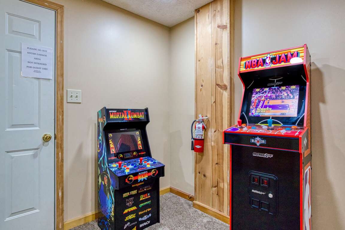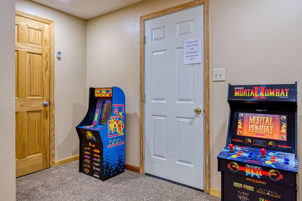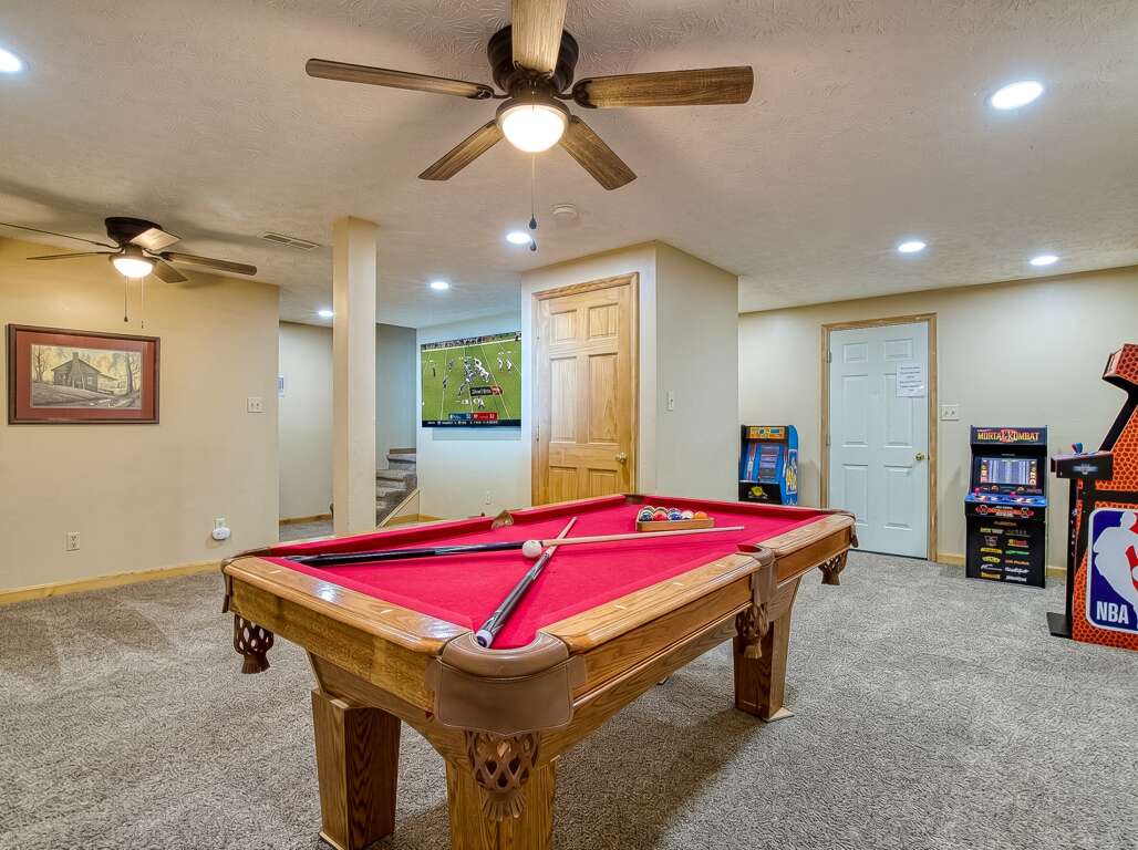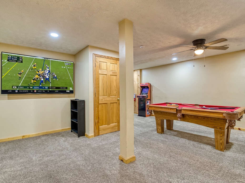 Lower level has a pool table, Peekin also has an electronic dartboard, three arcade games and a 75 inch tv. Parking can handle five cars.