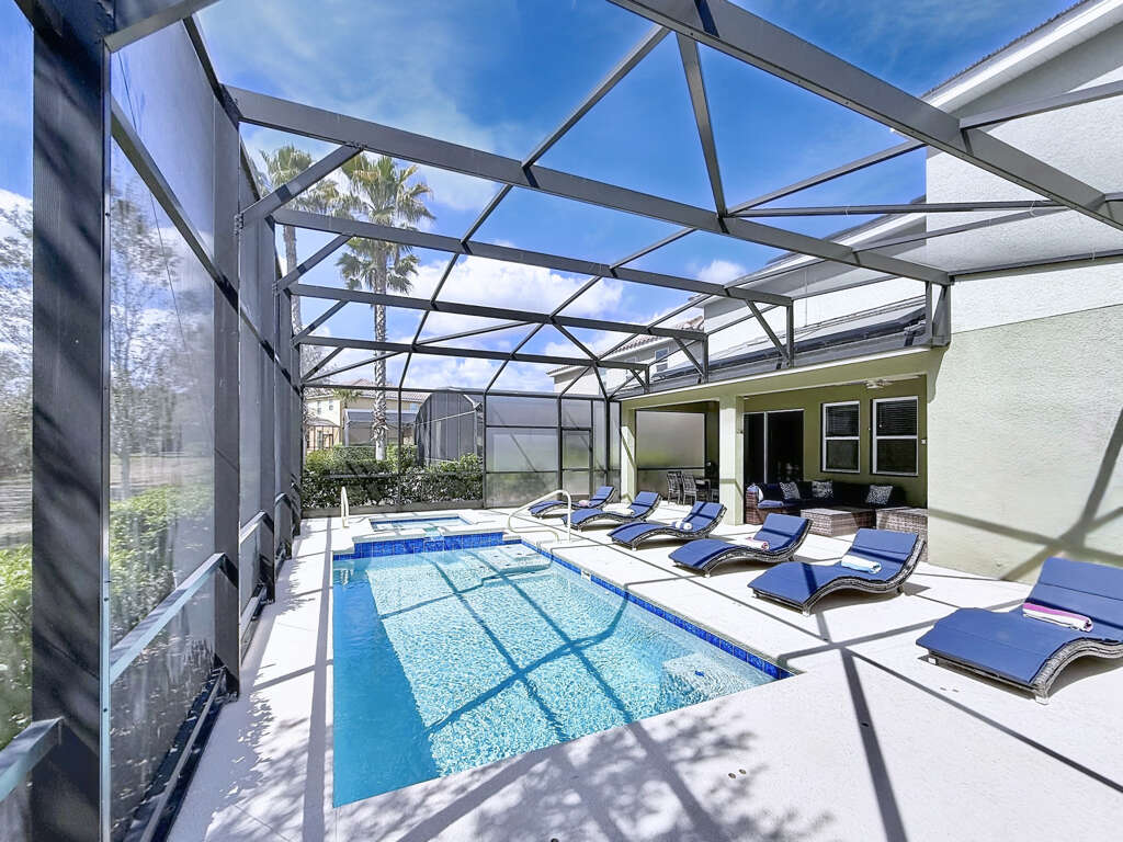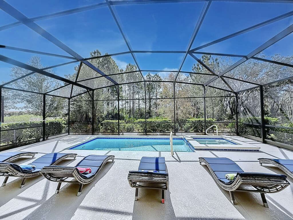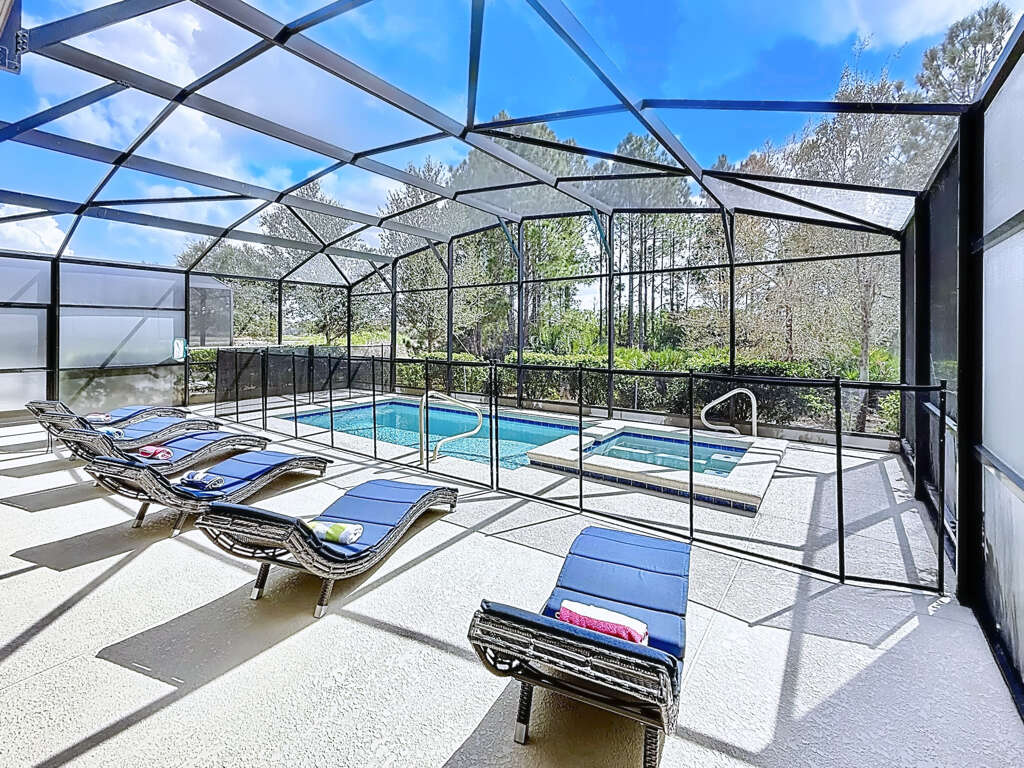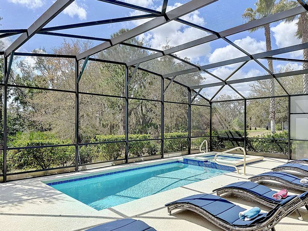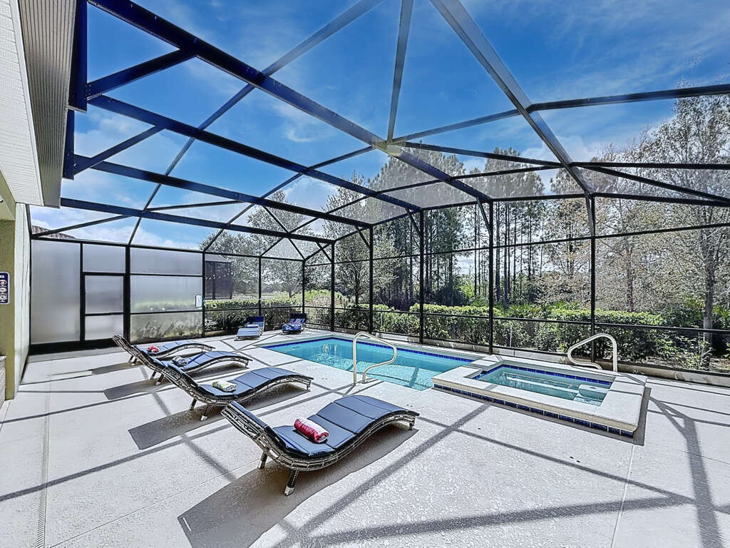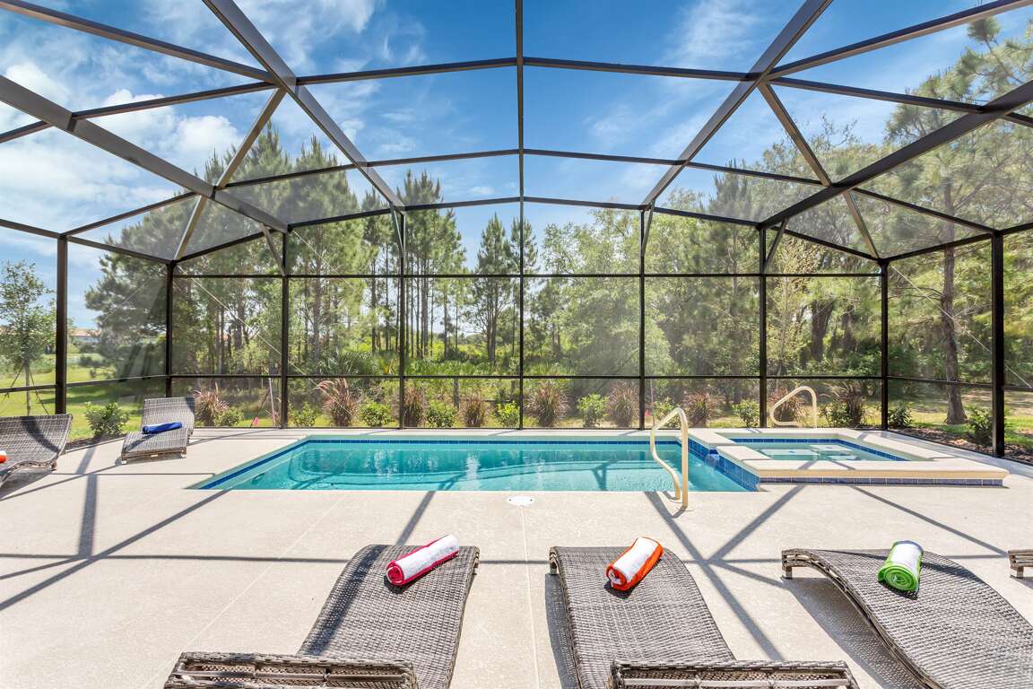 Immerse your family in the Florida sunshine and rejuvenate in our south-facing private pool, complete with a luxurious jacuzzi spa. The pool area offers unparalleled tranquility, as it adjoins lush woodlands, providing a peaceful oasis where your family can relax and create joyful moments together.