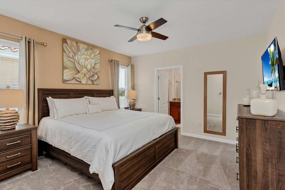Each of our king and queen bedrooms features an en-suite, ensuring privacy and convenience for the entire family as they prepare for exciting days or unwind after unforgettable adventures at the theme parks.