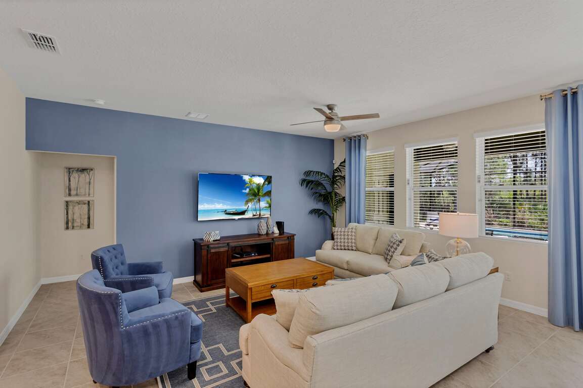 Discover the splendor of our 7-bedroom, 5.5-bathroom haven, thoughtfully crafted to provide families with unparalleled comfort. Situated within the exclusive gated Solterra Resort in Davenport, our villa grants access to an array of exceptional amenities, designed to cater to the needs of families.