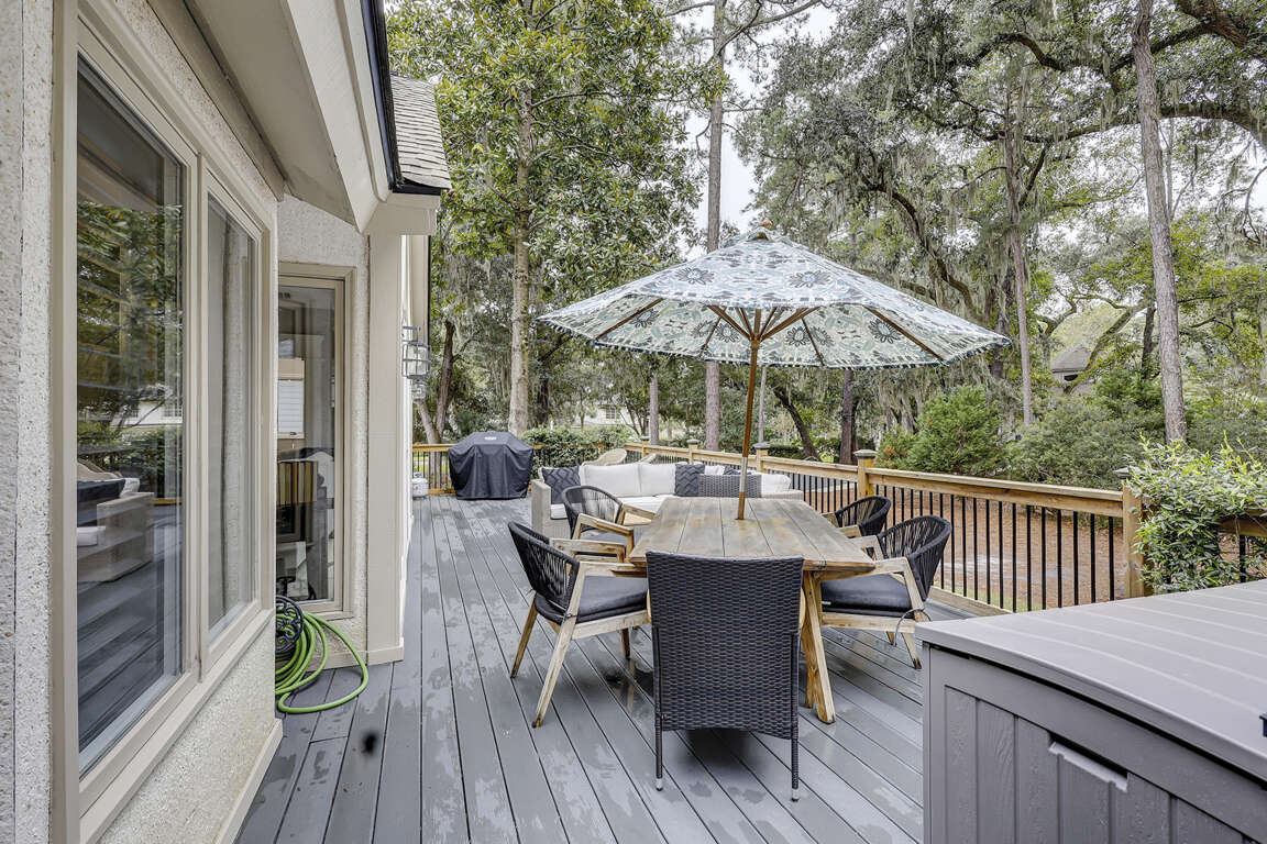 Wonderful luxury three bedroom vacation home in Sea Pines with updated new kitchens and baths. Kitchen counters are new, paint is new, furniture is new and baths have been updated also. House is tastefully decorated so you can relax and enjoy your vacation. Master bedroom has king size bed with en suite luxury master bath. Guest room has wonderful queen size bed with a new en suite full bath with walk in shower. The third bedroom has another queen bed with a twin bunk bed also with access to full bath. Great wooded views and a peak of the tennis courts and swimming pool from the back deck. Free wifi included. Free tennis and free community swimming pool. Sea Pines has over $150 million amenities to enjoy, beach, biking, golfing, tennis, restaurants and shops located all in Sea Pines Resort. Your reservation includes bike rentals and beach gear. 98 Shell Ring in Sea Pines is professionally managed and operated by Hilton Head Vacations, Inc, a locally owned company.