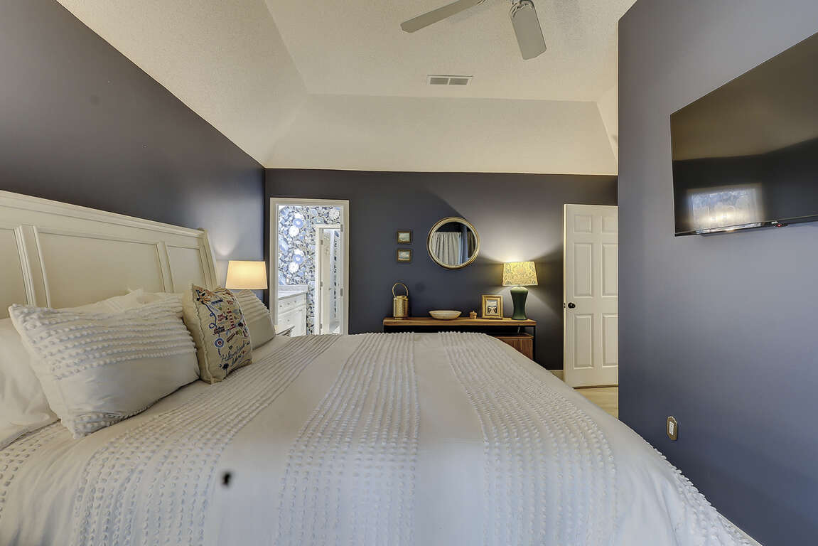 Updated kitchen is fully stocked with cooking utensils and small appliances to prepare the meals for the family vacation. Updated with hard surface counters, upgraded stainless steel appliances, open kitchen looking out to the living room, wonderful hard wood floors, high ceilings in the living room, large master suite with high end en suite bathroom and good size guest rooms for the family to enjoy. Wonderful amenities right behind the house, the swimming pool and tennis courts are a very short walk. Free tennis and very nice size pool.