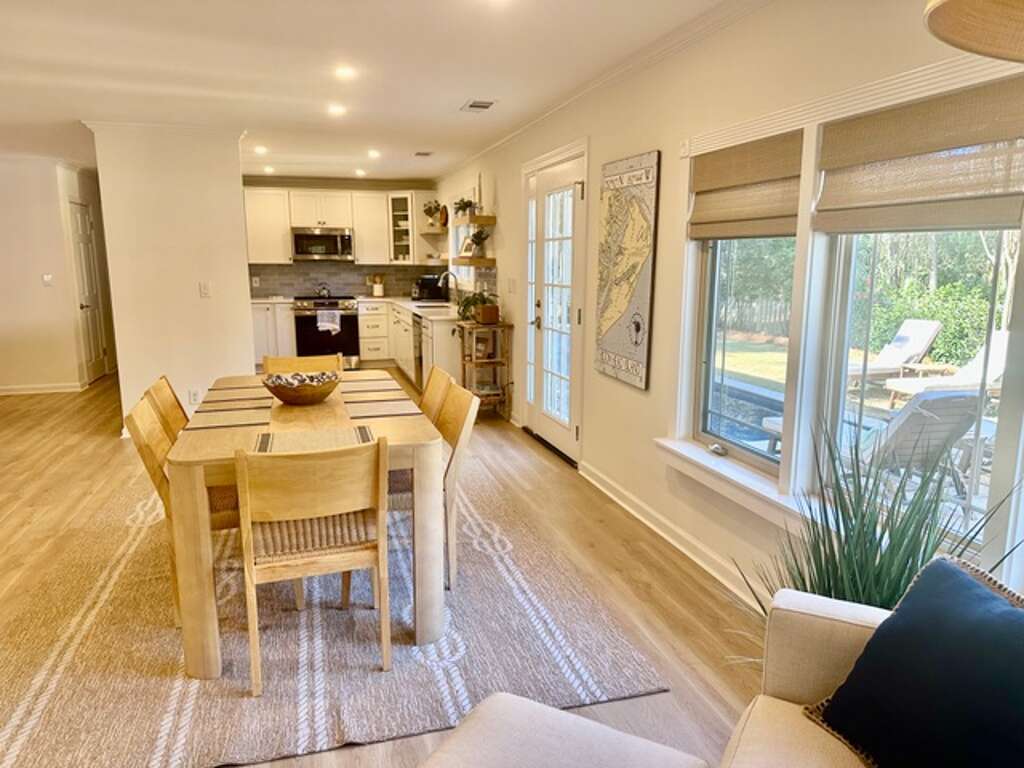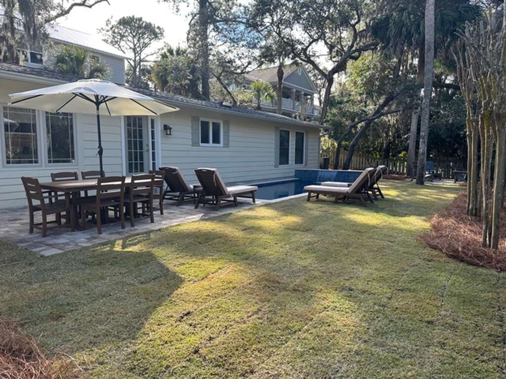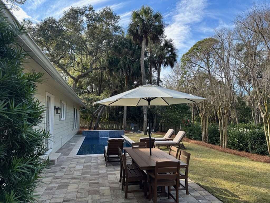 Wonderful totally remodeled three bedroom three bath home only four houses to the beach!! New Pool is here!! Free pool heat in spring, fall and winter. Easy short walk to the beach! What a spectacular vacation home for your family to enjoy. Beach gear and bike rentals come with every rental. Huge brand new kitchen with stainless steel appliances and quartz counter tops. Kitchen is fully equipped with high-end stainless-steel pots, pans, and everything you need to create great meals or snacks for the family. The luxury home is all on one floor and a very nice large outdoor living space with private barbecue grill. The master bedroom features a king-size bed with a beautiful en-suite master bath. The master bath has a double vanity sink and large walk-in glass shower. The guest room has another king-size bed and a very nice full bath. The third bedroom has a bunk bed with a double bed on the bottom and a twin bed on top with access to a full bath and glass shower. A comfortable pull-out twin sleeper sofa chair bed is available in the sitting room. There is a washer and dryer in the home too. You can park three cars in the driveway. 2 Elderberry in Forest Beach is professionally managed and operated by Hilton Head Vacations, Inc, a locally owned company.