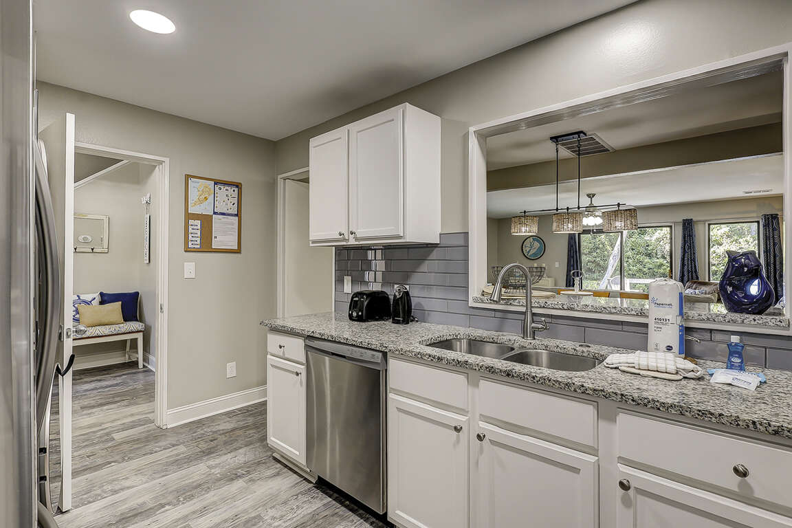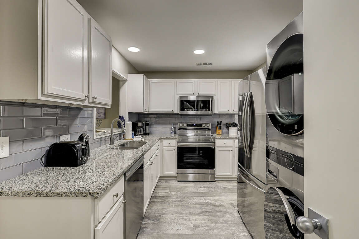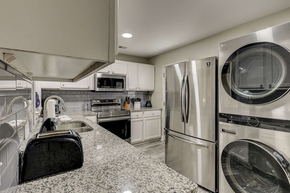 Granite countertops, stainless steel appliances