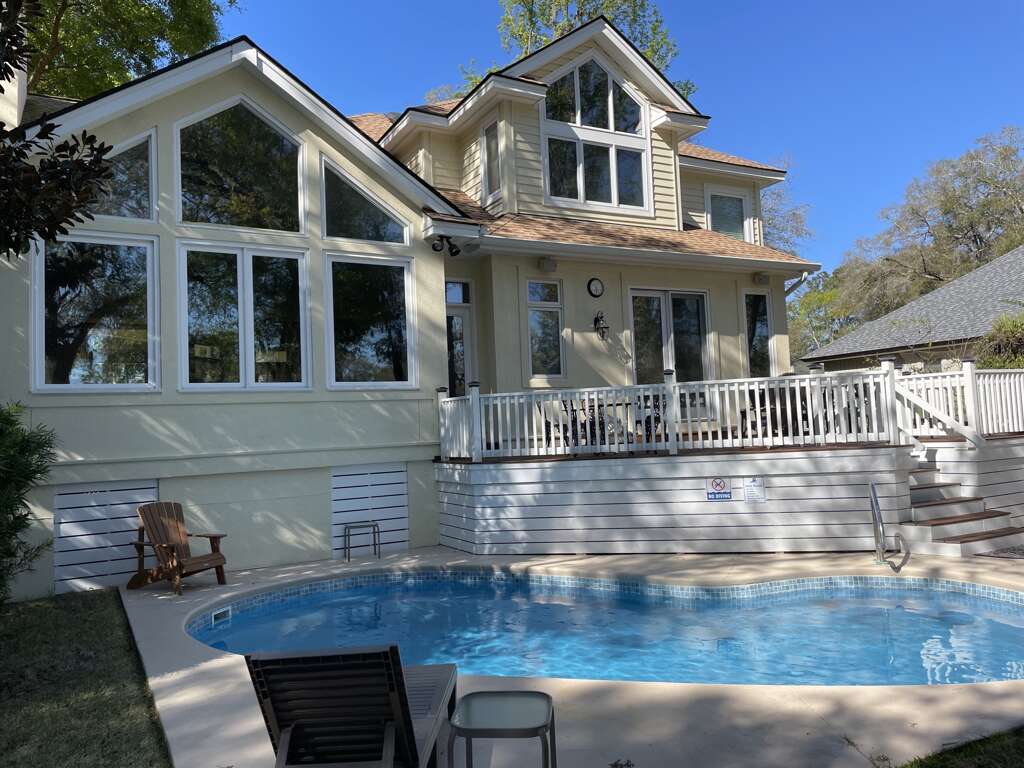 Providing a perfect blend of comfort and luxury, 28 Heath 4 Br Home Pool Palmetto Dunes, an oceanfront house in Hilton Head Island, SC, boasts of a hot tub and pool for an unforgettable stay.