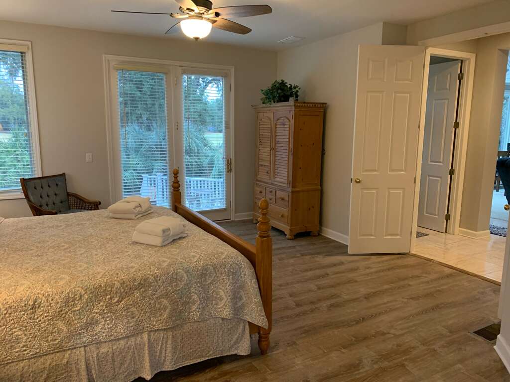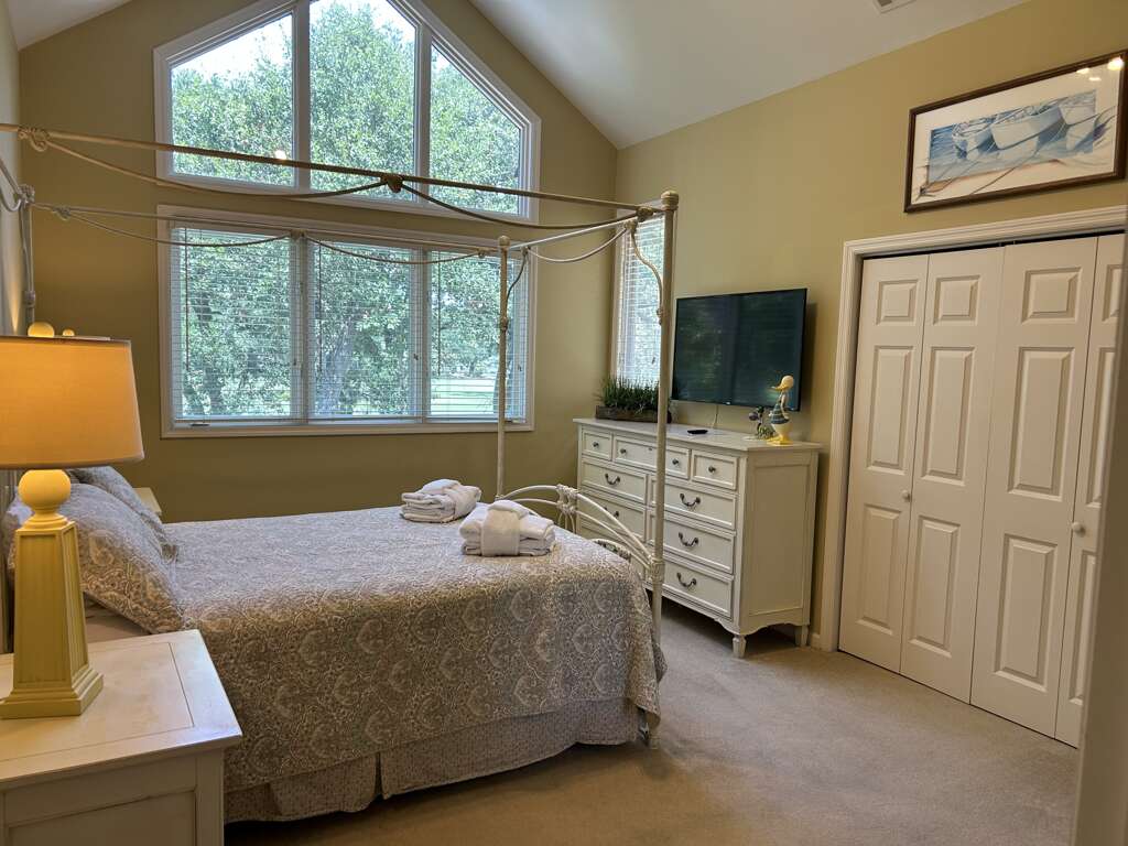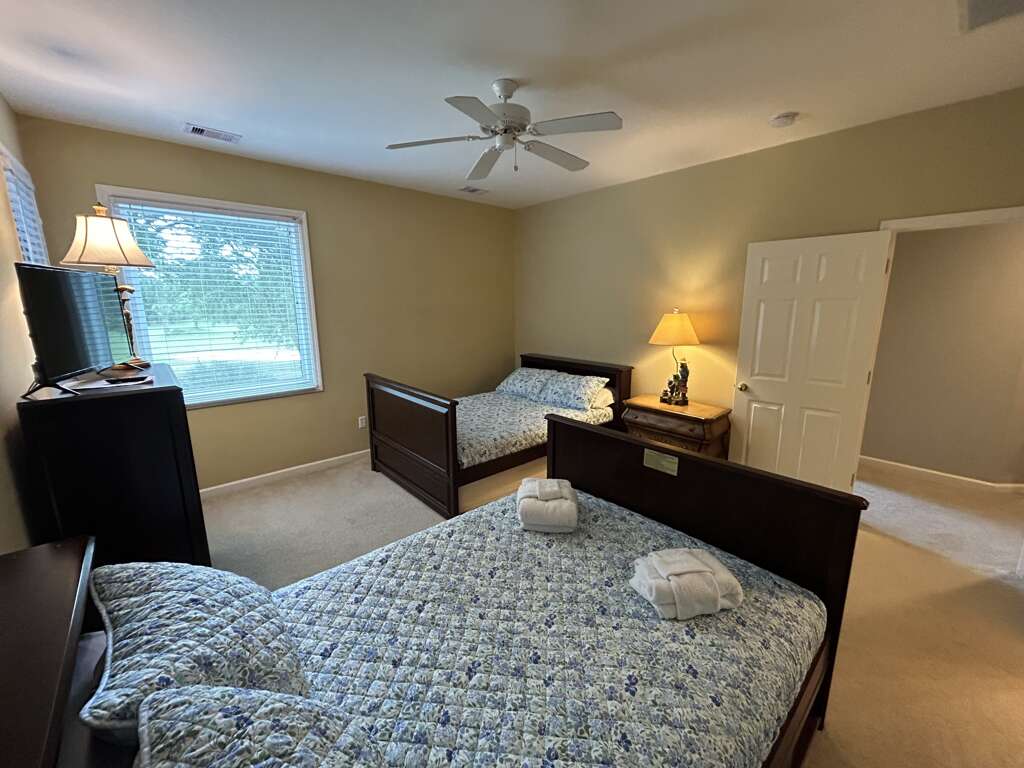 The Master BR features a king size bed with an oversize bath featuring stand alone shower and pulsating jet tub, and a walk-in closet. A private French door from the master suite leads to the rear composite deck with a view of Fazio Golf Course and pool/spa that adds to the charm. The 2nd master suite features vaulted ceilings with a queen size bed & a queen size sleeper sofa, a large 65"' HD Smart TV and a large, luxury private bath. The 3rd & 4th BR's have magnificent views of the golf course; the 3rd BR has a queen bed with vaulted ceilings and a private bath; the 4th BR has a queen bed and a bunk bed with 2 twin beds and a private bath. Each BR has a Smart Roku TV. There is also a bonus room with a futon sofa and a 58" Roku TV with cable, DVD player, a Nintendo Wii game system and hookups for kids to bring their own video games. For larger groups, two twin mattresses (no box springs) are stored in the 4th BR closet.