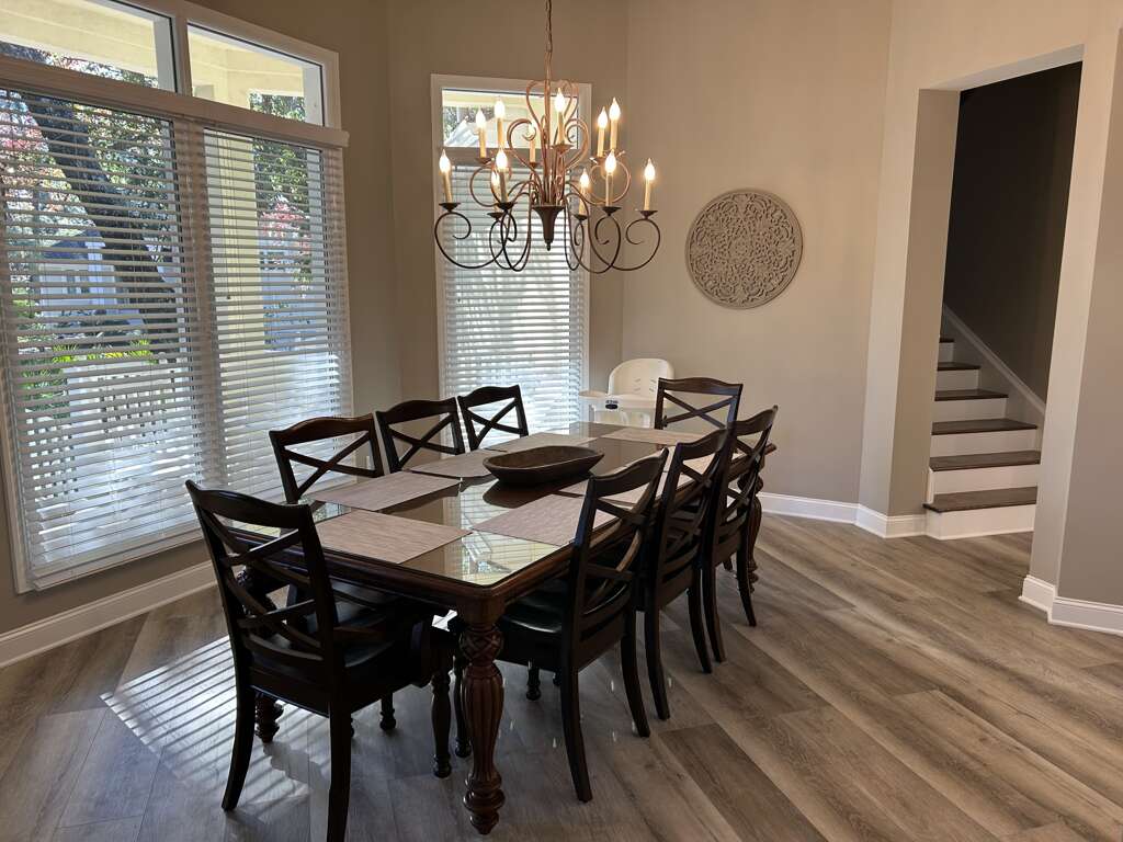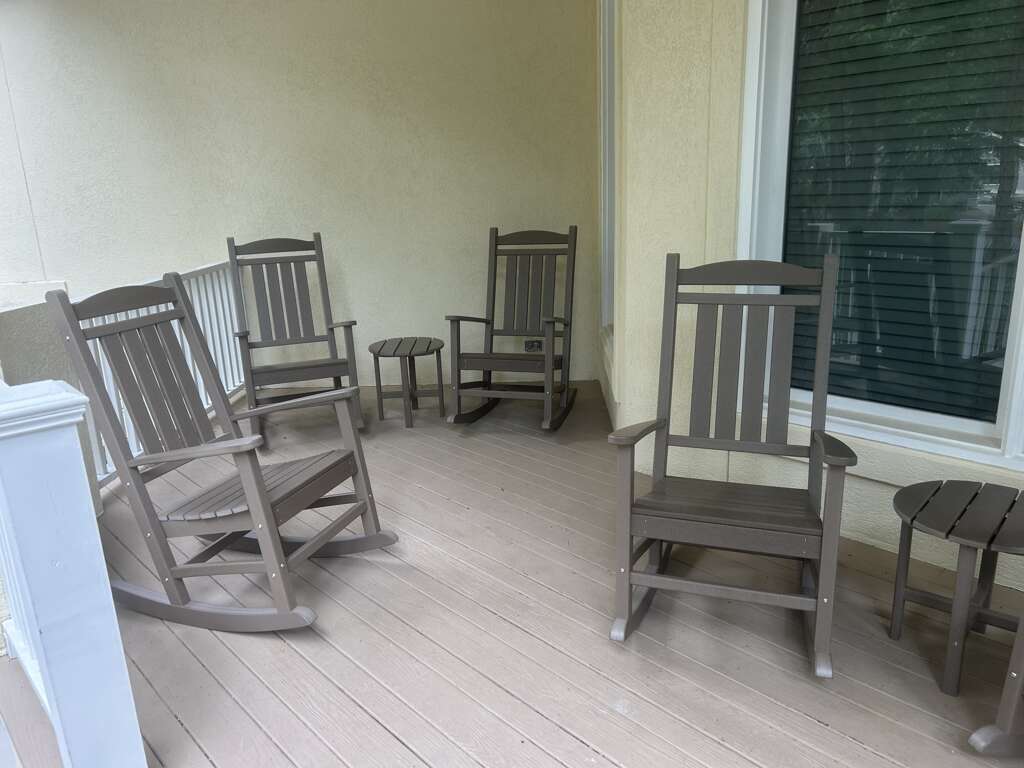 An inviting deck entrance way, with 5 rocking chairs, welcomes you to the home. The back composite deck allows for plenty of “sun tanning”, reading, and good ol’ fashion relaxing. There is a half bath in the family room near the back door for easy pool access.