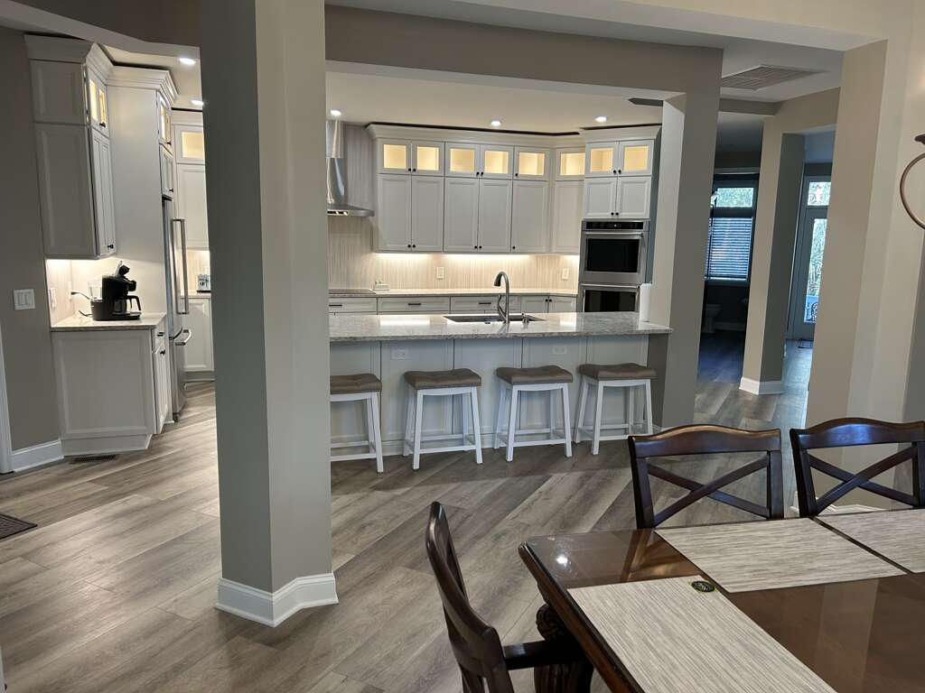 The spacious kitchen (newly renovated in 2024) will help to entertain a crowd. Breakfast bar, children's portable picnic table, high chair, booster seat and additional dining area help to seat an overflow crowd. Quartz counter tops, glass top stove, 2 Refrigerators, ice maker and lots of cupboards and storage help to make cooking on vacation an activity you actually can enjoy! There is a laundry room complete with front loading washer and dryer (2nd refrigerator is located here).
