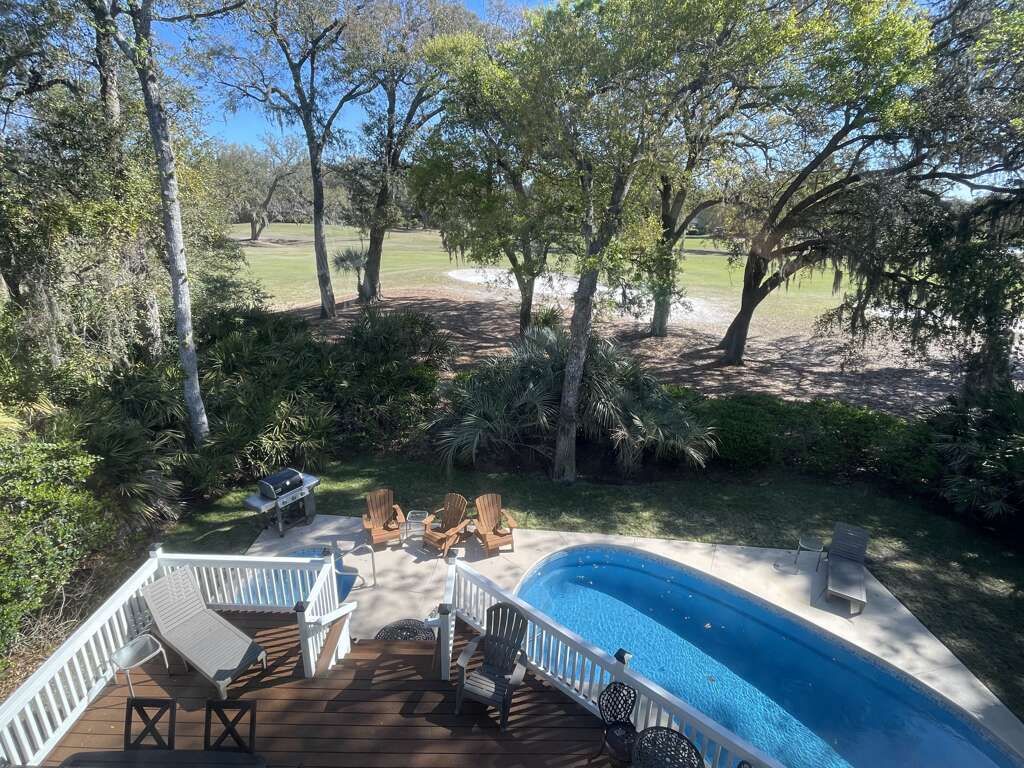 LUXURY RENTAL! Truly a luxury rental in majestic Palmetto Dunes with a splendid view of the golf course, and a 9 minute walk to the beach. This luxury vacation home is located near the end of a quiet cul-de-sac. 28 Heath Drive has 3500 sq. ft. of living space to include 4 bedrooms with private baths (a 5th ½ bath on 1st floor easily accessible from pool), Bonus Room and an optional heated pool or spa. Golf, tennis, bike/kayak rentals, along with a host of fun activities help make this gated community on Hilton Head Island the #1 vacation resort in US/Canada (Travel & Leisure Family Magazine). The spacious and open Vaulted family room provides a beautiful view of the back pool and spa and a clear view of the 2nd hole of the George Fazio golf course. A large 65 inch HD Smart TV is on the wall above the fireplace for family viewing.