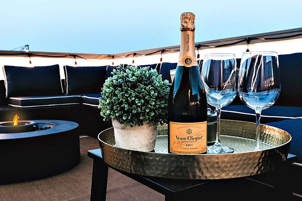 ✔ Large rooftop patios with outdoor seating and string lights for a magical evening vibe.