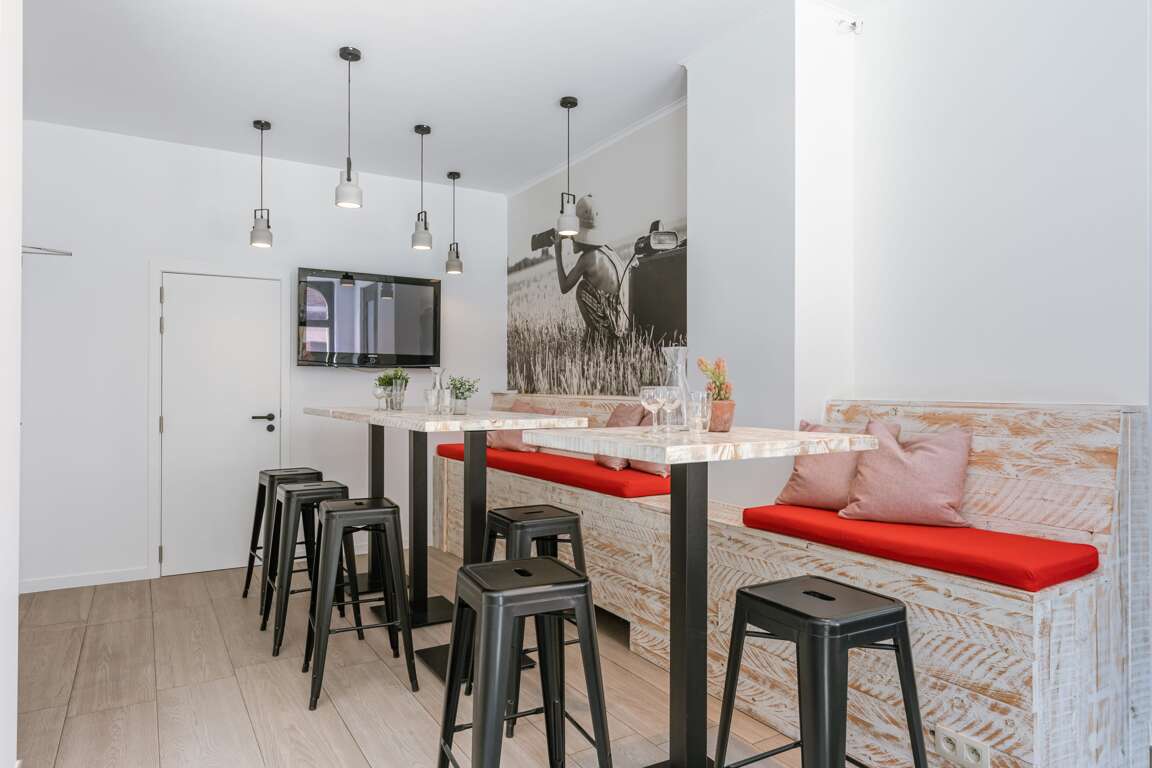Need more space for your group? No problem! This building has several vacation apartments, allowing you to stay with groups of six, twelve, eighteen, or even twenty-four guests. If you're traveling with a large group, you'll appreciate the shared kitchen on the ground level, perfect for preparing meals together and having a drink. Feel free to contact HUSWELL for more information.