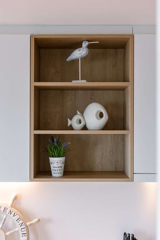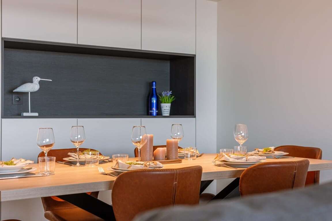 The open living and dining area offers the perfect spot to unwind — enjoy a meal together, watch your favorite show, or simply gaze out over the sea from the comfort of the sofa. The fully equipped kitchen makes meal preparation a pleasure, offering both modern functionality and breathtaking coastal views.