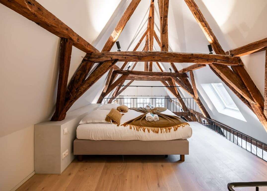 Welcome to this charming city loft on the 4th floor. - Authentic wooden beams and high ceilings - Open kitchen and modern living room - Bathroom with walk-in shower and separate toilet - Enchanting mezzanine bedroom - Stunning city center views - Pet-friendly for your furry companions - Nearby breakfast and lunch spot below the apartment Welcome to a charming loft nestled on the 4th floor, where authenticity meets contemporary comfort. This unique city retreat showcases authentic wooden beams and soaring ceilings, creating an inviting atmosphere that blends rustic charm with modern style. From the moment you ascend the authentic staircase, you are welcomed into a space designed for relaxation and urban living. The owner of this property has partnered with HUSWELL to provide you with a seamless and enjoyable guest experience. While HUSWELL manages the digital rental process, your booking is directly with the owner. Local support, such as cleaning, maintenance, and on-site assistance, is handled by either the owner themselves or a trusted third party appointed by the owner. To ensure the safety and authenticity of both our guests and property owners, we require verification of your reservation through a simple digital pre-check-in process — similar to what you'd experience at a hotel or flight check-in. This process includes basic questions, a rental agreement and acknowledging the house rules, granting you secure and hassle-free access to the property. At HUSWELL, we’re committed to providing you with exceptional support throughout your stay. As the facilitator of the digital rental process, our dedicated team is available 24/7 through multiple channels. Our primary method of communication is the booking platform's messaging system, but you can also reach us via HUSWELL’s email, chat, and phone channels. We strive to respond promptly — typically within 10 minutes during business hours and within 60 minutes outside of them. No matter the time or need, we’re here to ensure your stay is as smooth, secure, and stress-free as possible.