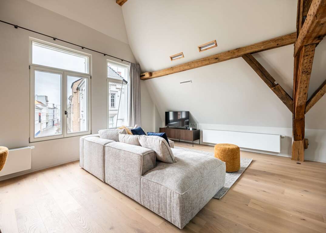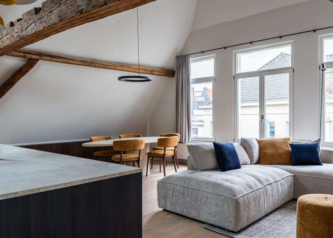 Enjoy captivating views of the vibrant city center, adding an extra layer of allure to your stay in this exceptional Gent property. The loft’s open design invites a seamless flow between living areas, offering a perfect blend of comfort and sophistication.