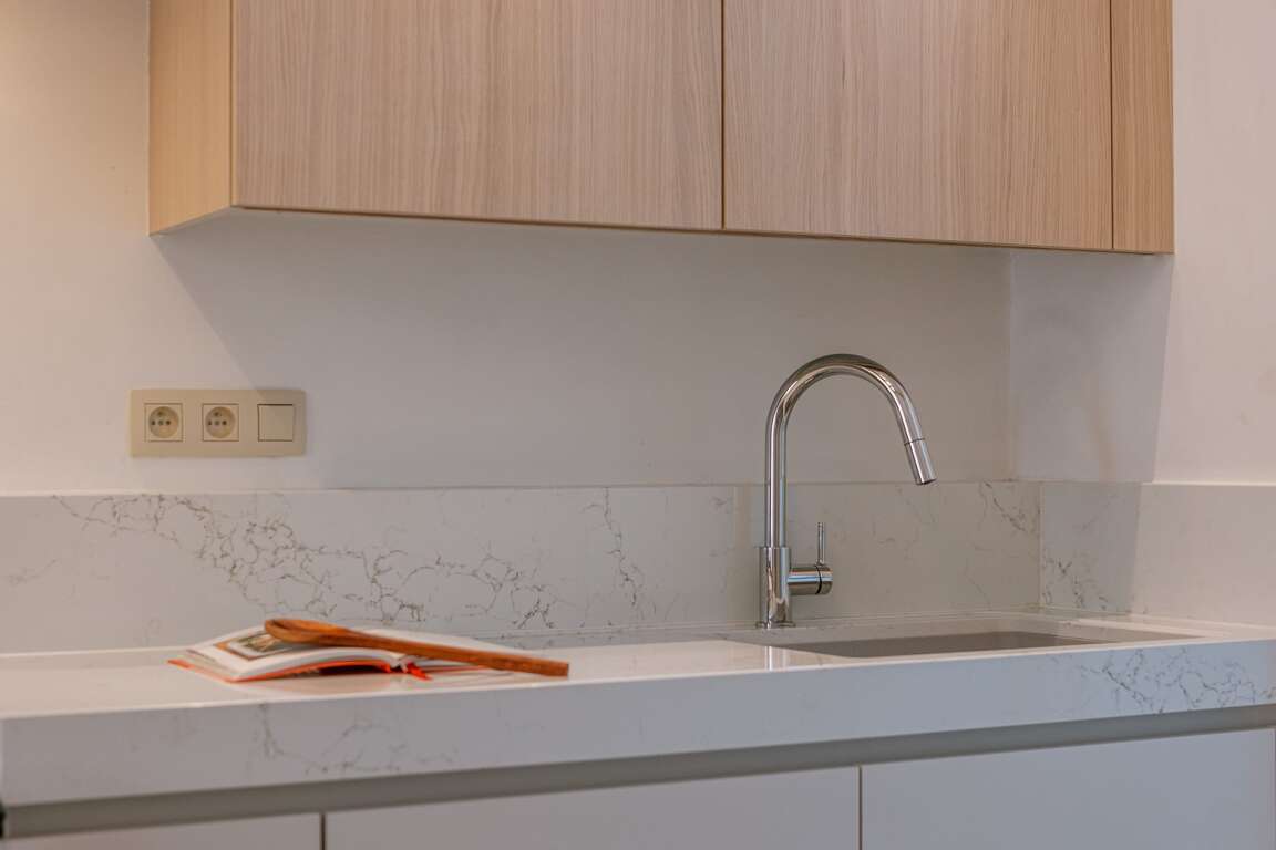 - Fully-equipped kitchen, washing machine, and dryer