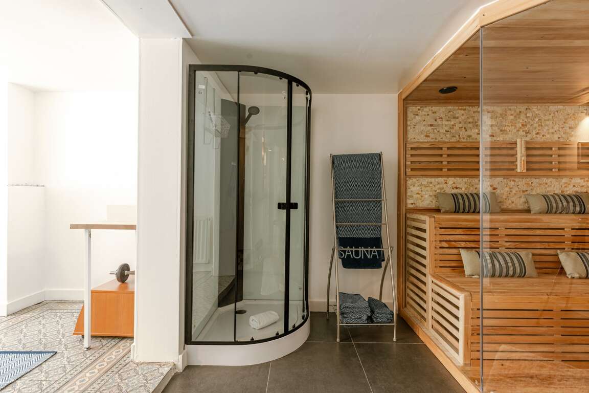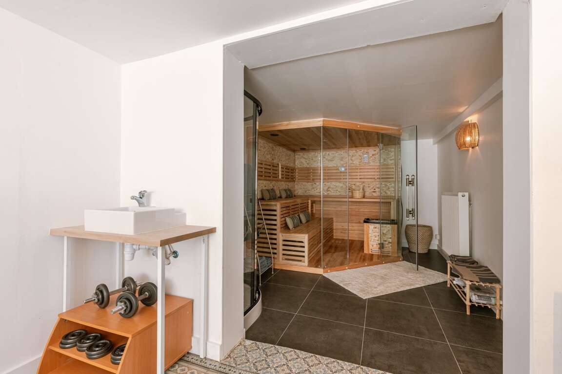 - Wellness basement with a sauna and fitness amenities