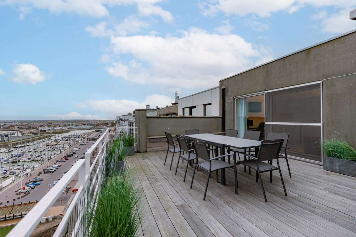 Perched on the 9th and 10th floors of the building, this belle étage apartment offers a stunning view of the harbor and minigolf. With its two spacious terraces, you can enjoy the refreshing sea breeze and soak in the serene ambiance at any time of the day. The apartment is recently updated, blending modern comfort with a touch of coastal charm, creating the perfect setting for a relaxing seaside retreat.