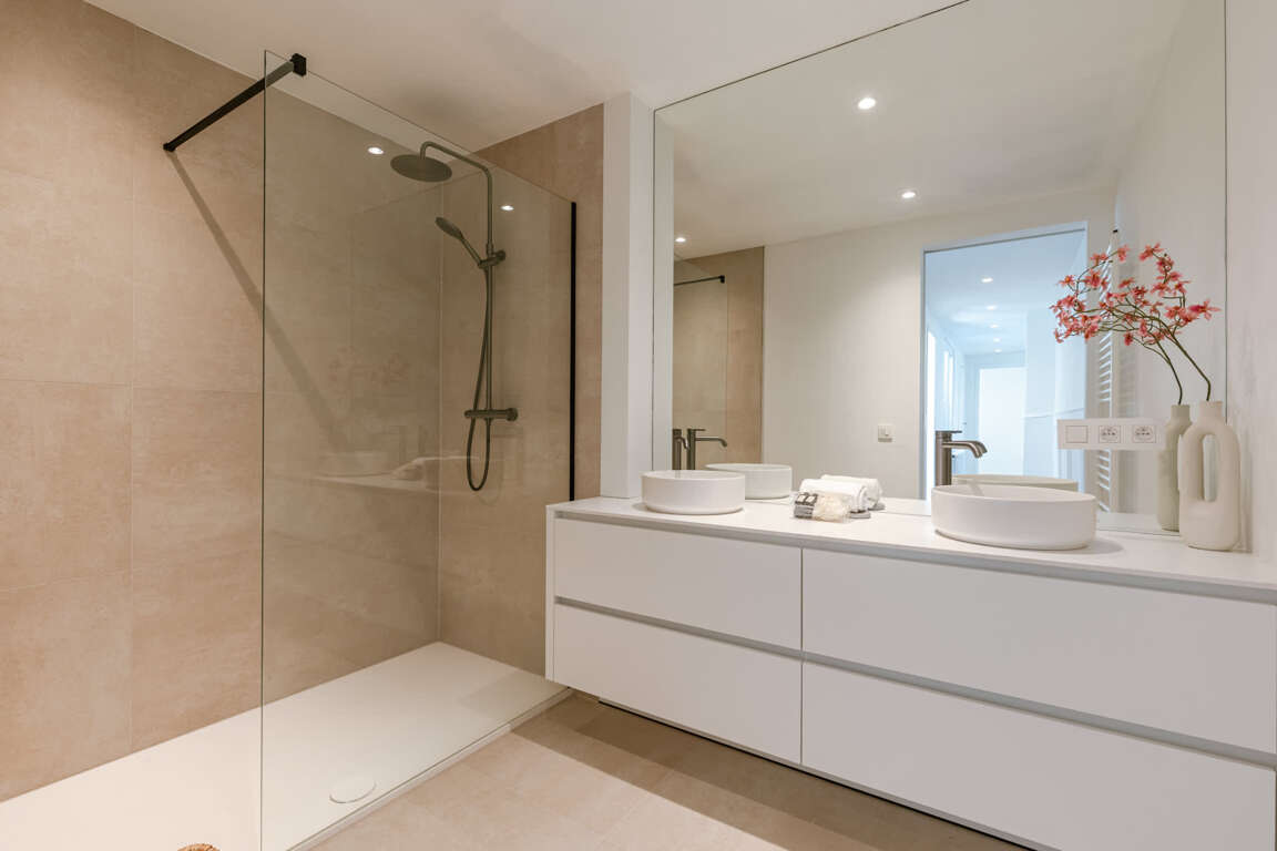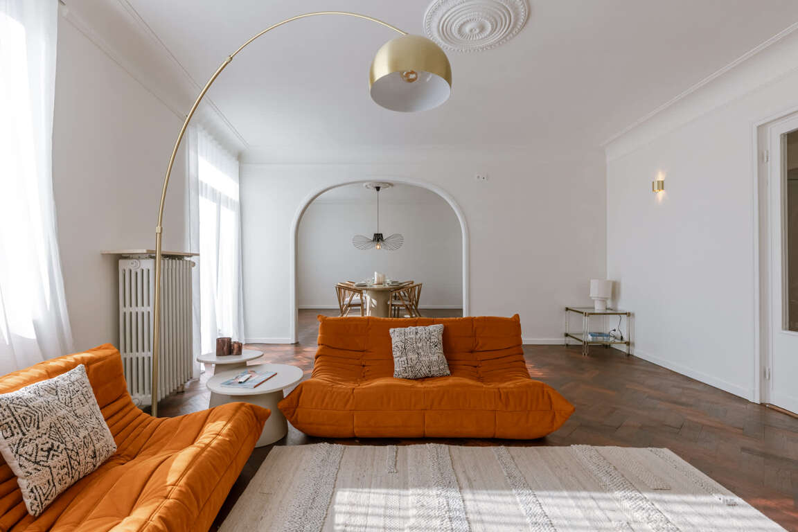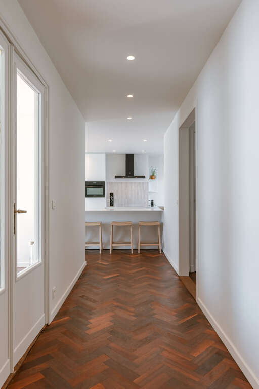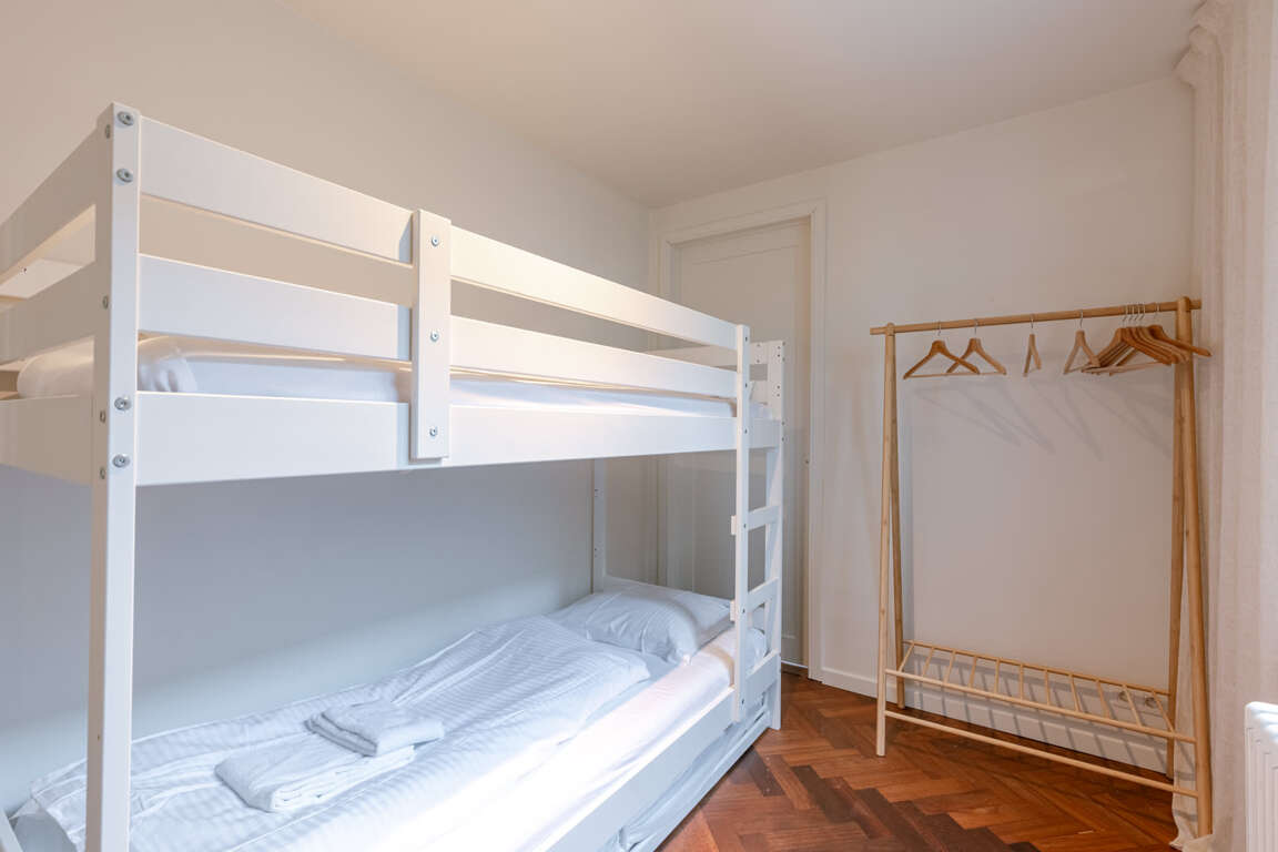 - The entire apartment — living area, 3 bedrooms, modern bathroom, and fully equipped kitchen.