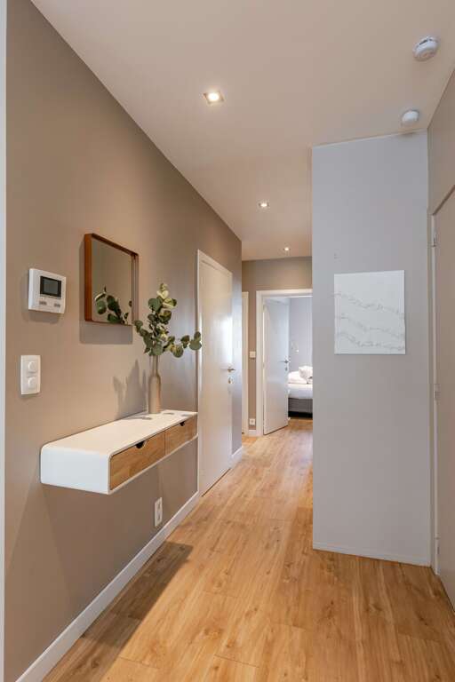 Welcome to a cozy Knokke apartment. Spacious living room and fully equipped kitchen. Two bedrooms including one with ensuite bathroom. Balcony perfect for relaxing. Baby cots and cutlery provided. Private garage parking 200m away. Just 500m from the beach and next to the biggest shopping street. Welcome to this charming apartment located in the vibrant heart of Knokke-Heist, just 500 meters from the beach and beside the town’s largest shopping street. This property offers a perfect blend of convenience and comfort, making it an ideal choice for families and travelers seeking both relaxation and easy access to local attractions. The cozy yet spacious design ensures a welcoming atmosphere for a memorable vacation. Guests will have exclusive access to the entire apartment, including the spacious living room, fully-equipped kitchen, two comfortable bedrooms, and two bathrooms. Enjoy the small balcony, perfect for relaxing with a morning coffee or an evening aperitif. A private garage box, located 200 meters away, is also available for your convenience. Baby cots, baby cutlery, and children's amenities are available, making it ideal for families. Nestled in the heart of Knokke, your apartment places you steps away from the vibrant pulse of this charming seaside town. Just a 500-meter stroll will lead you to the golden sands and refreshing waves of the beach. Explore the renowned shopping street, also a short walk away, where you'll discover an array of boutiques, designer stores, and inviting cafes. Indulge in culinary delights at the numerous restaurants offering everything from fresh seafood to international cuisine. For a leisurely afternoon, wander through the picturesque streets, soaking in the elegant atmosphere and discovering hidden gems. The area is also well-connected, making it easy to explore nearby attractions and enjoy all that Knokke-Heist has to offer. Getting around Knokke is a breeze! Public transportation options are readily available, allowing you to explore the area with ease. The nearest tram stop is a short walk away, providing convenient access to various destinations along the coast. For those arriving by train, Knokke-Heist train station is easily accessible, offering connections to major cities. The apartment is located at Bayauxlaan 4/11, 8300 Knokke-Heist, Belgium. Parking is available: a private garage box is included for your convenience, located 200 meters from the apartment. This ensures secure parking for your vehicle throughout your stay. Travel times: From the apartment, you can reach the beach in a 5-minute walk. The shopping street is also a short walk away. Explore the surrounding areas at your own pace. Discover the perfect blend of convenience and tranquility at our Knokke retreat. The owner of this property has partnered with HUSWELL to provide you with a seamless and enjoyable guest experience. While HUSWELL manages the digital rental process, your booking is directly with the owner. Local support, such as cleaning, maintenance, and on-site assistance, is handled by either the owner themselves or a trusted third party appointed by the owner. To ensure the safety and authenticity of both our guests and property owners, we require verification of your reservation through a simple digital pre-check-in process — similar to what you'd experience at a hotel or flight check-in. This process includes basic questions, a rental agreement and acknowledging the house rules, granting you secure and hassle-free access to the property. At HUSWELL, we’re committed to providing you with exceptional support throughout your stay. As the facilitator of the digital rental process, our dedicated team is available 24/7 through multiple channels. Our primary method of communication is the booking platform's messaging system, but you can also reach us via HUSWELL’s email, chat, and phone channels. We strive to respond promptly — typically within 10 minutes during business hours and within 60 minutes outside of them. No matter the time or need, we’re here to ensure your stay is as smooth, secure, and stress-free as possible.