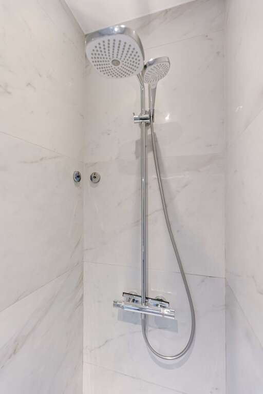 - Master bedroom featuring an ensuite bathroom with a refreshing shower
