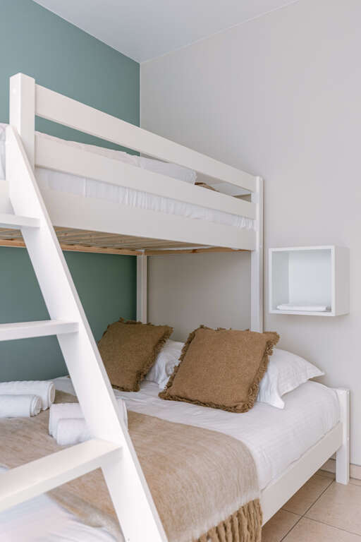 - Second bedroom offers a unique bunk bed combination with a double bed below and a single bed above