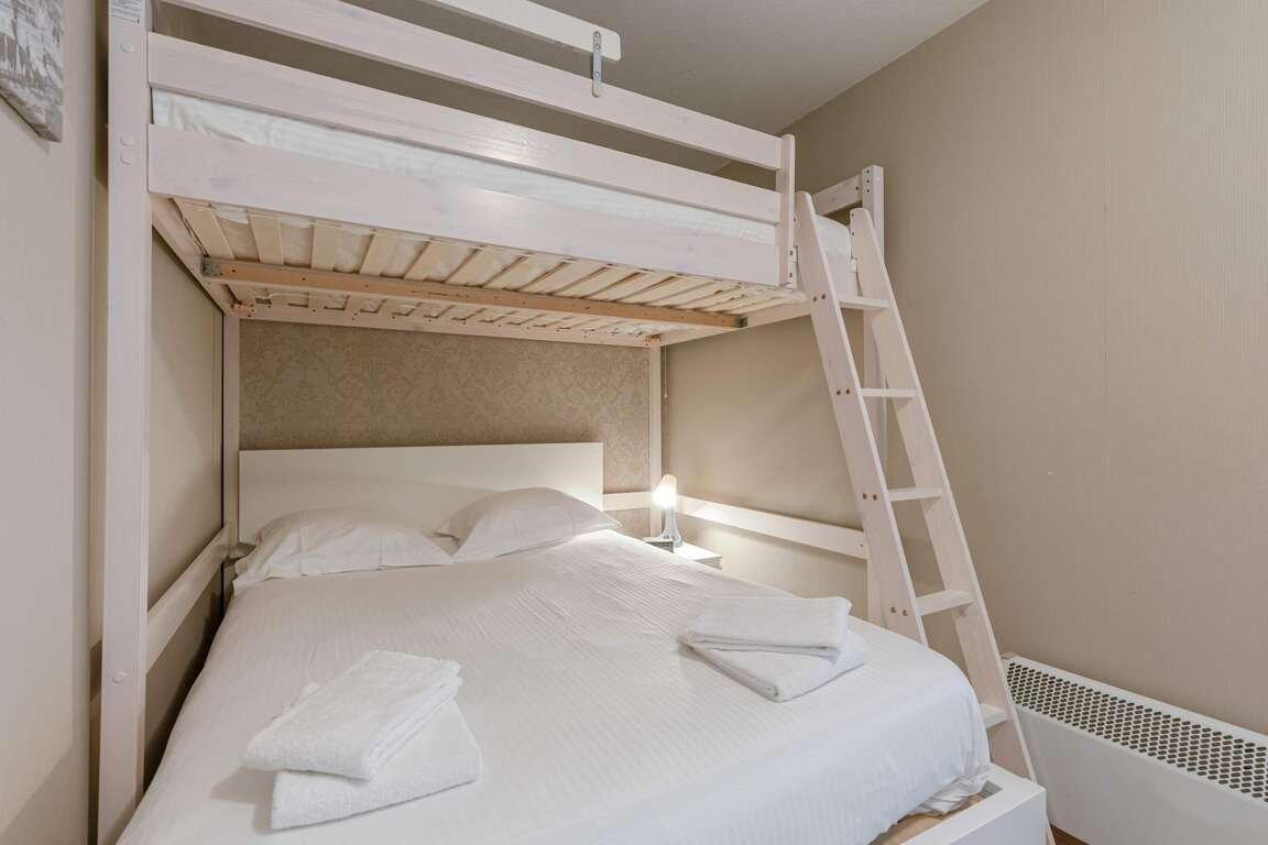 - Custom bunk bed featuring a lower section for parents and an upper level for children