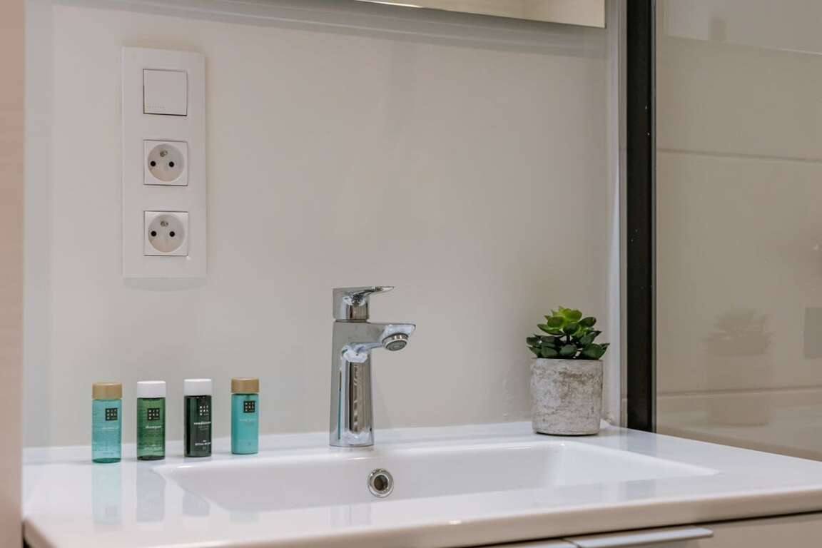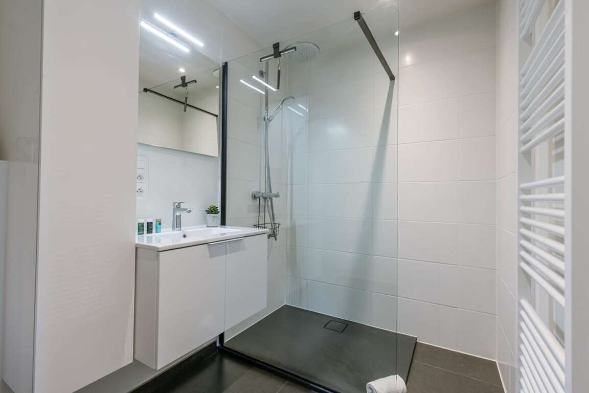 This two-bedroom apartment features contemporary design and premium amenities, ensuring a comfortable and memorable vacation. You will find a fully equipped kitchen with a kitchen island that invites culinary creativity, while the modern bathrooms with walk-in rain showers add a touch of elegance. Private parking within the building adds convenience for guests traveling with a vehicle.