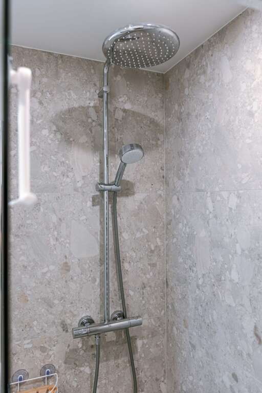 - Two bedrooms: one with a cozy double bed, the second with a single bed and a double bed
