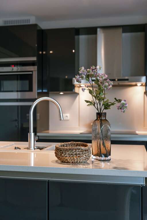 - Modern furnishings combined with a sleek, black fully equipped kitchen