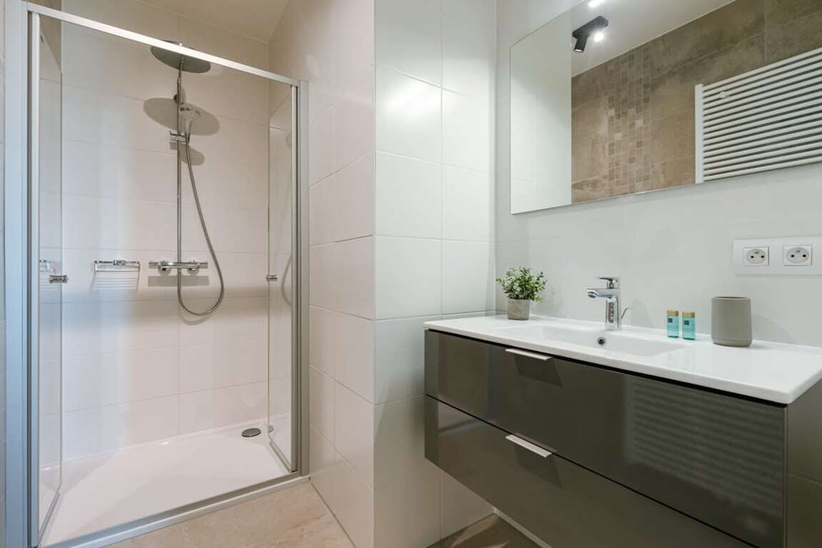 - Walk-in shower in the modern bathroom for a refreshing experience