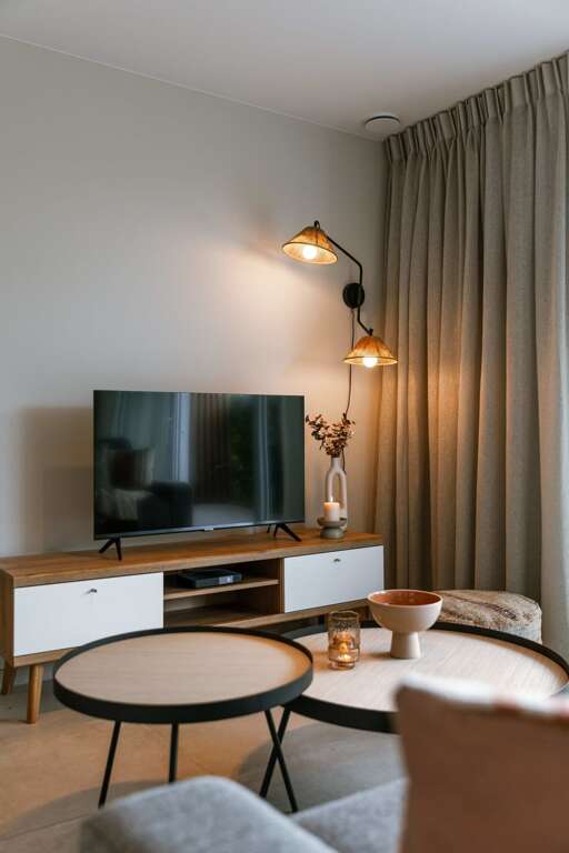 - Warm and stylish decor creates a welcoming ambiance throughout the apartment